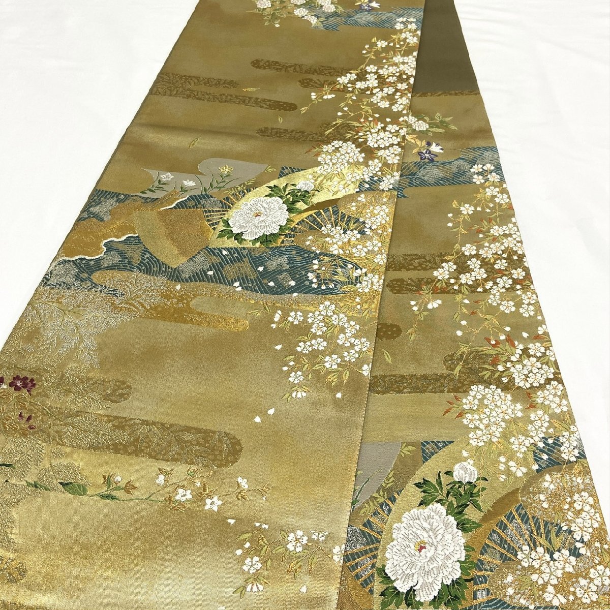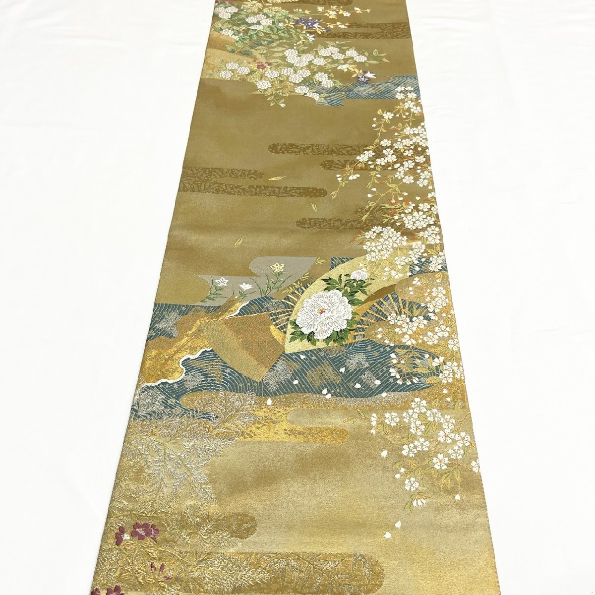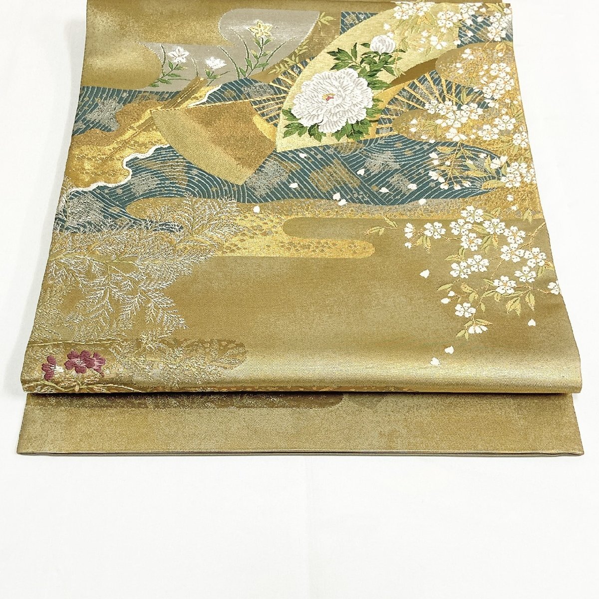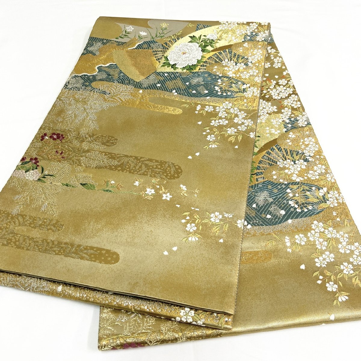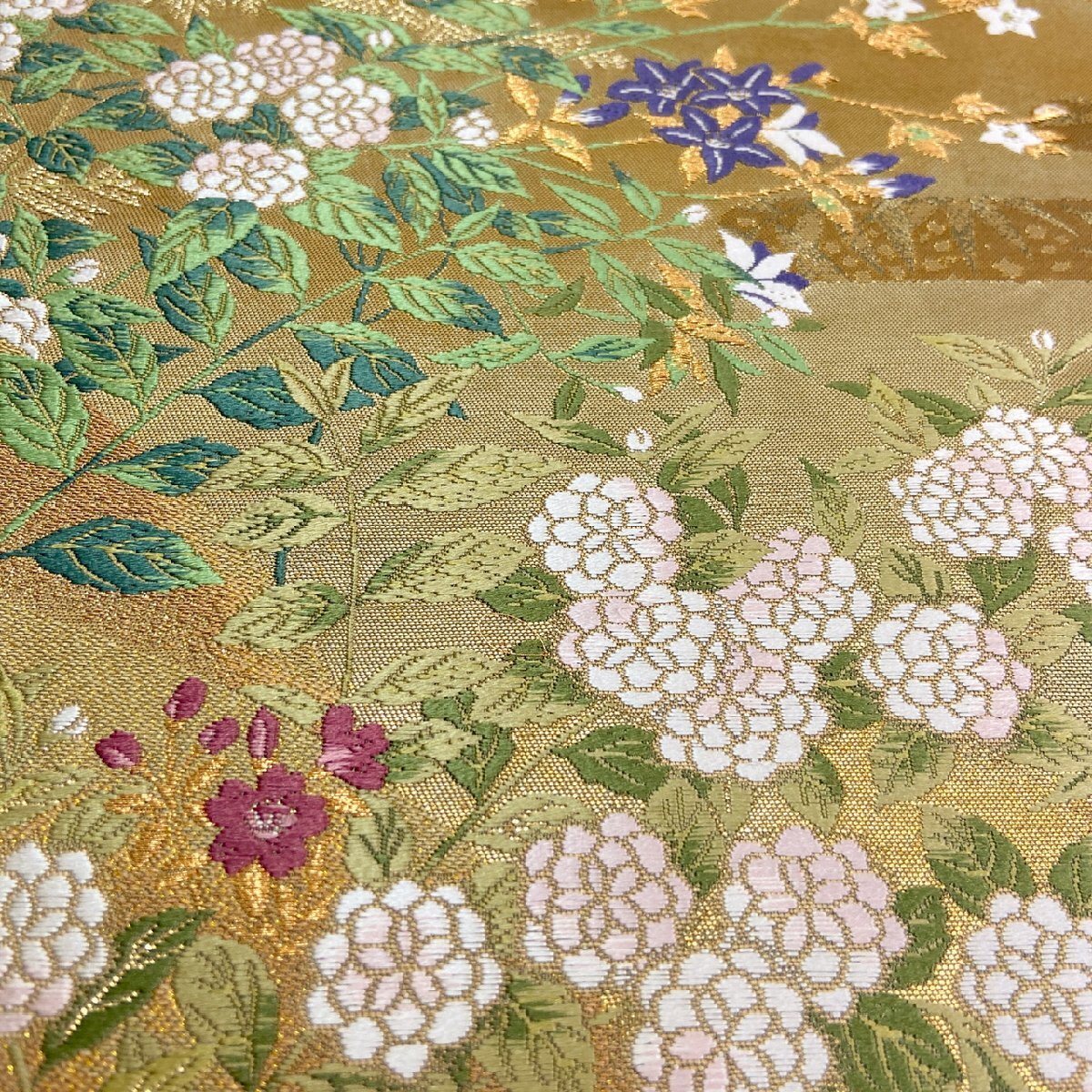 着物月花 引箔 品のある花 袋帯 六通柄 正絹 金銀糸 ob6211