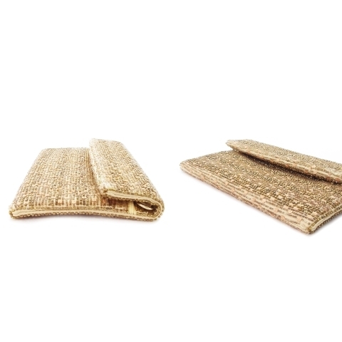 ダイアグラム クラッチバッグ セカンドバッグ 2way ショルダーバッグ ビーズ スパンコール メタルショルダーストラップ サーモン