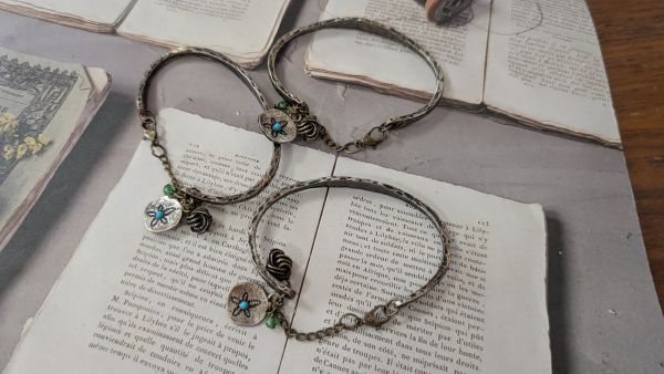 1粒ターコイズブルー&シルバーカラープレート バングル3個セット