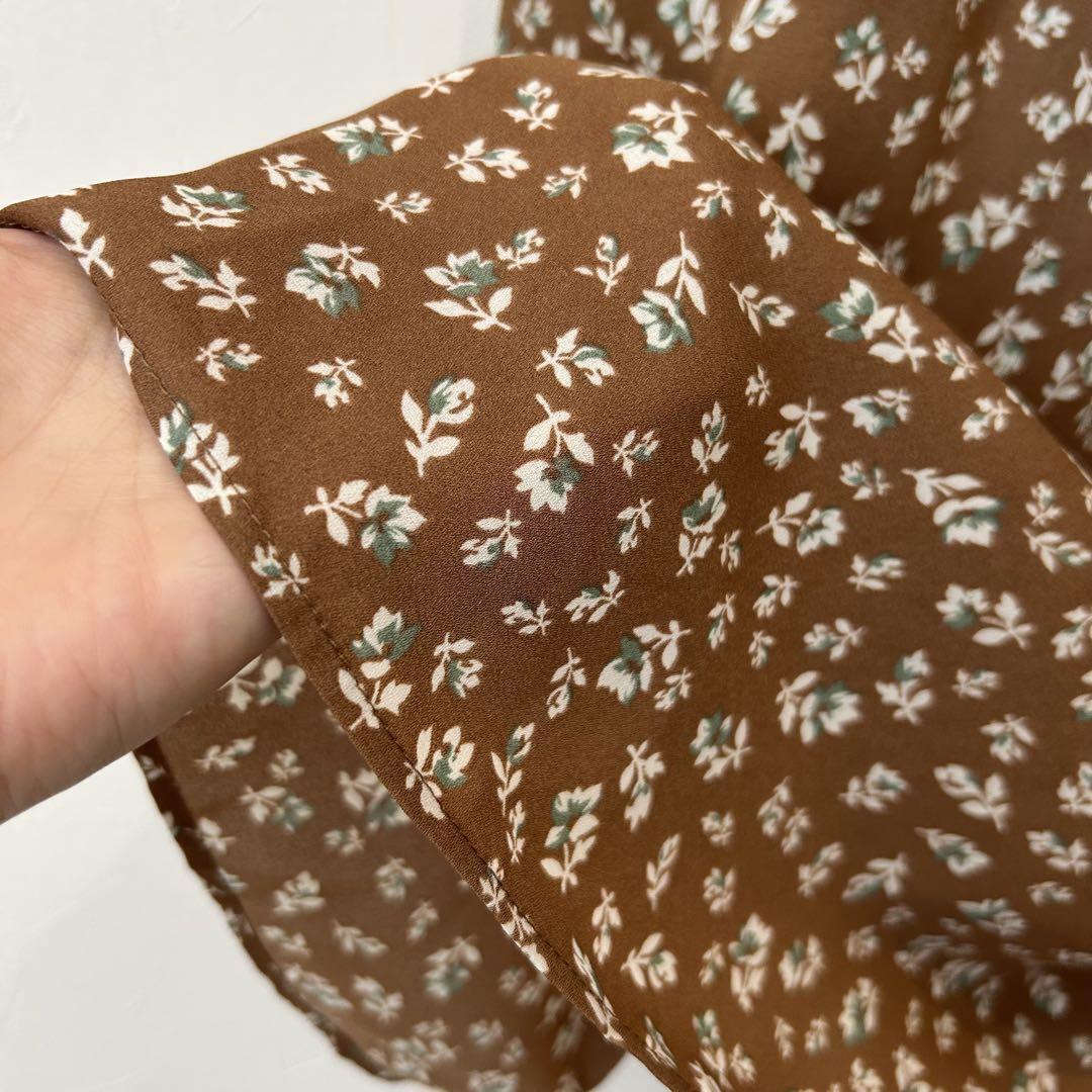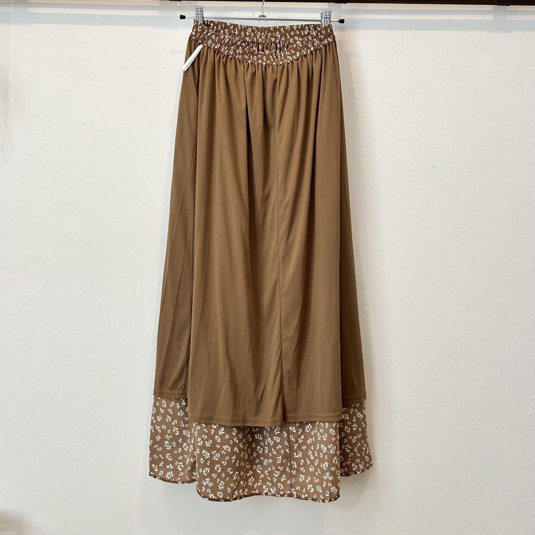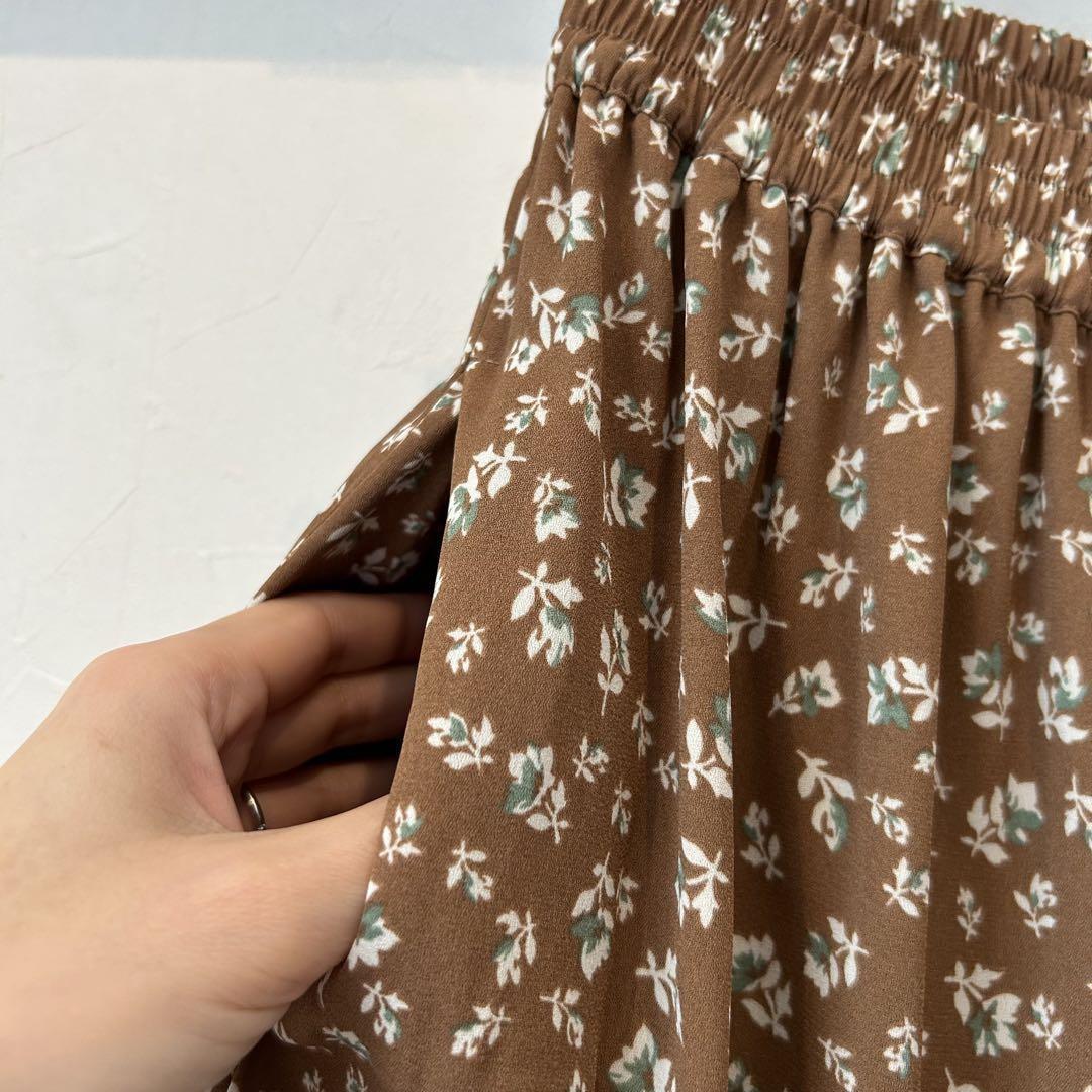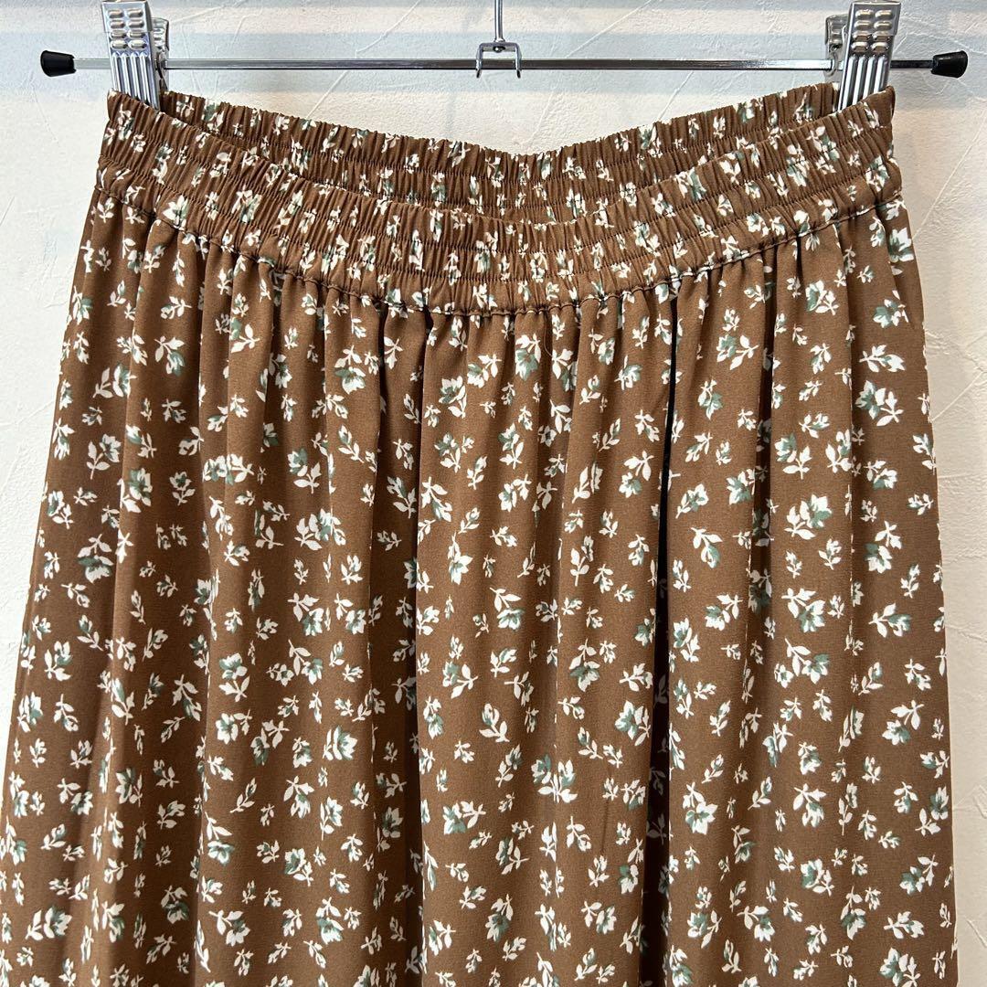 夏も秋も◎小花柄ロングスカート ブラウン S ナチュラル系