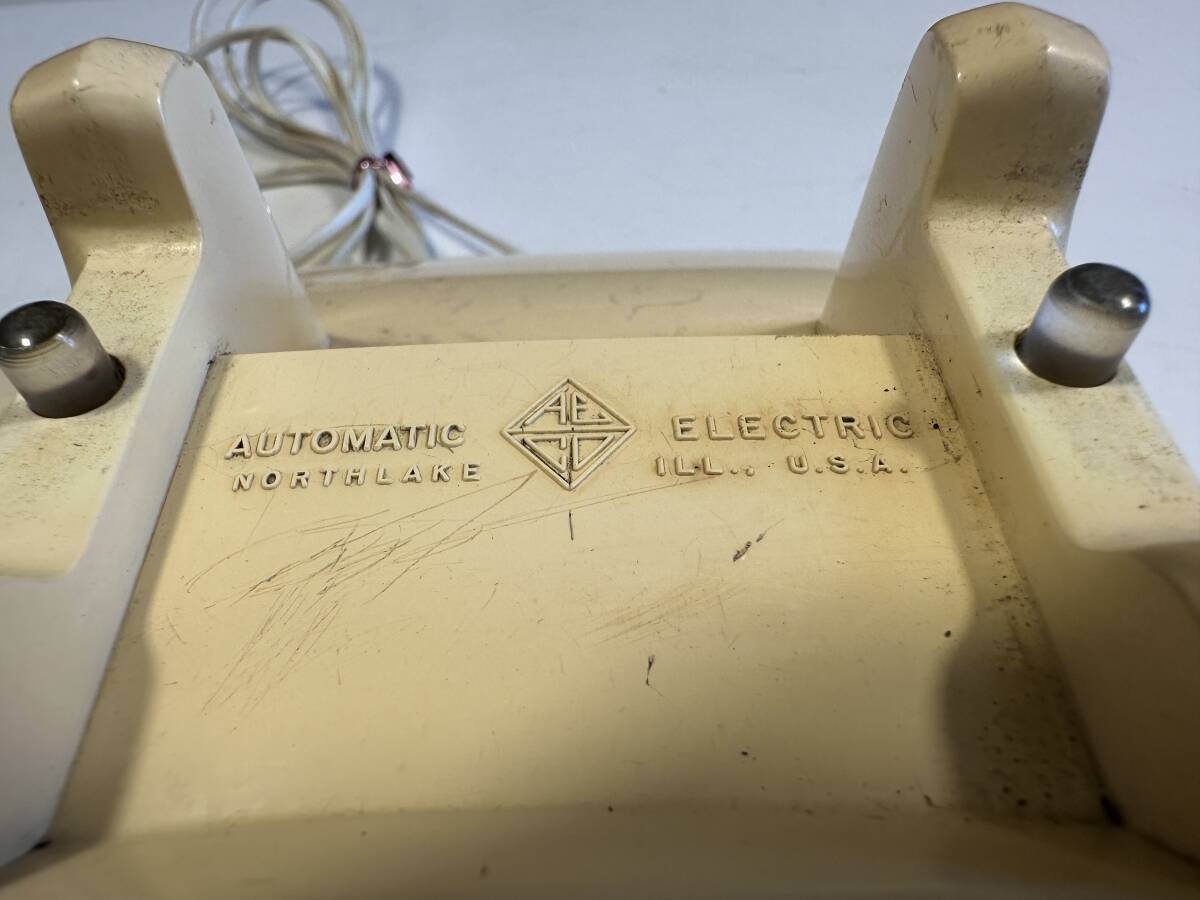 ・NORTH LAKE ダイヤル式電話 AUTOMATIC ERECTRIC ・サイズ(受話器含みます) 高さ 約13㎝ 奥行 約23㎝ 幅 約13.5㎝ ・状態 目立つ傷/スレ等はありません。 ダイヤル中心の表示紙?がありません。 ディスプレイ用(作動は確認出来てません) 写真でご確認してください。 素人の目で確認しているため、見逃し等有るかもしれませんので、ご理解していただける方にて、お願いいたします。、神経質な方は、すみませんが、ご遠慮ください。 現状販売ノークレームノーリターンでお願いします。 | ||||