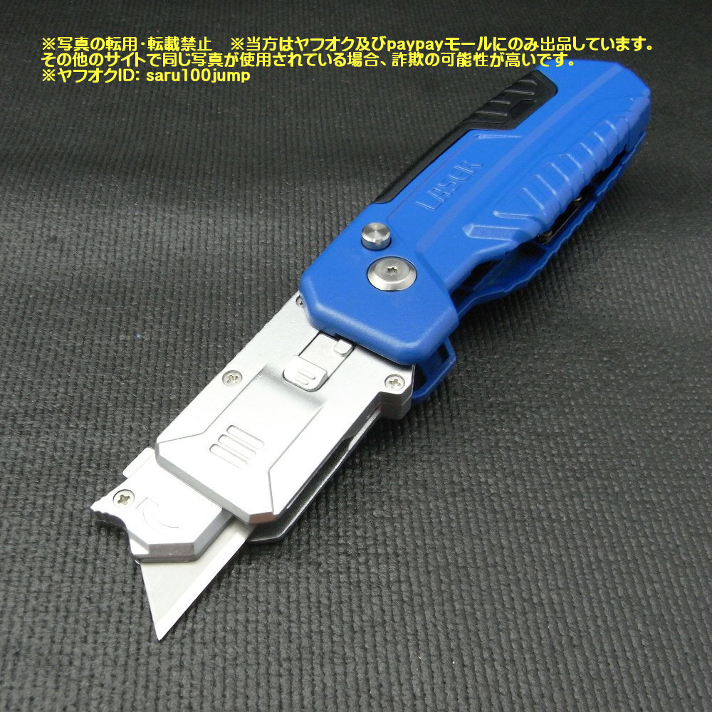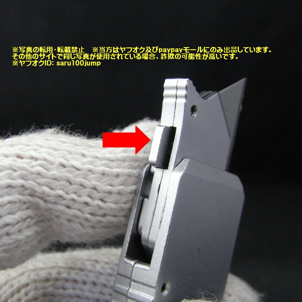 9枚目の写真の矢印のボタンを右に倒すと刃の抜き差しができます。