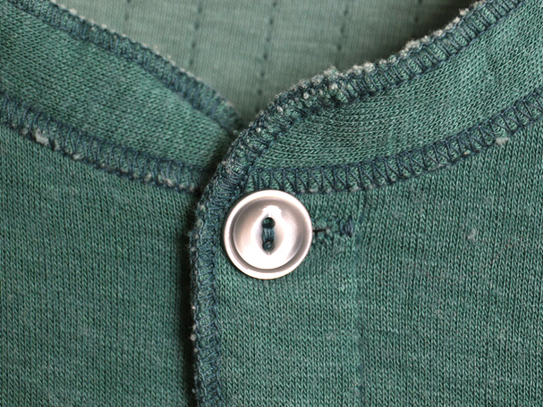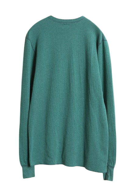 80年代のヴィンテージ L.L.BEAN のヘンリーネック長袖Tシャツです。 モデル名は、RIVER DRIVERS SHIRT 素材は、OUTER LAYER 55% ACRYLIC・45% WOOL INNER LAYER 100% COTTON 生地を二重にした2レイヤー仕様 表側はアクリルウール、裏側はコットン素材 着心地抜群でしっかりとした保温性の確保できる商品 希少な、MADE IN USA ( アメリカ製 ) 人気の ヘンリーネックタイプ ボタンは、クラシカルなネコ目ボタン使用 コーディネートの良いアクセントになる、グリーン ボディ 肉厚でしっかりした、2レイヤー 何枚あっての困らない使い勝手の良い、シンプルなデザイン 近年こういったクラシカルなデザインの物は 見かけなくなりました。 インナーとしてはもちろんこれだけでも様になる 着回しのきく、長く愛用できる商品です。 |