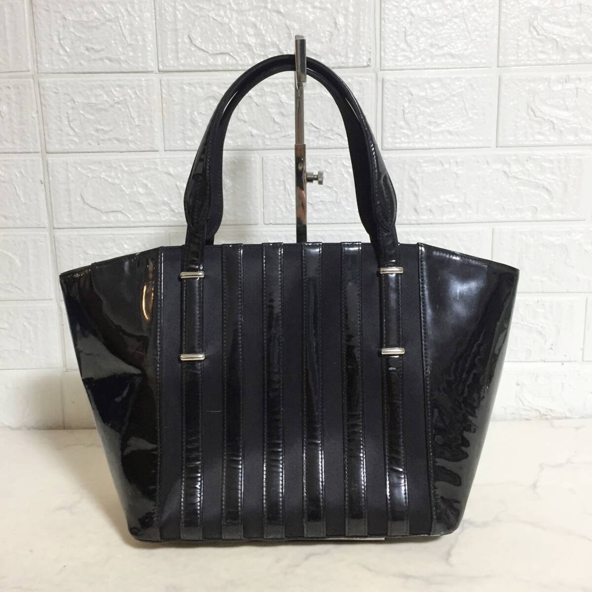 no36548 WAKO 和光 ワコウ エナメル ナイロン サテン ハンド トート バッグ