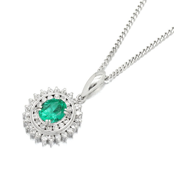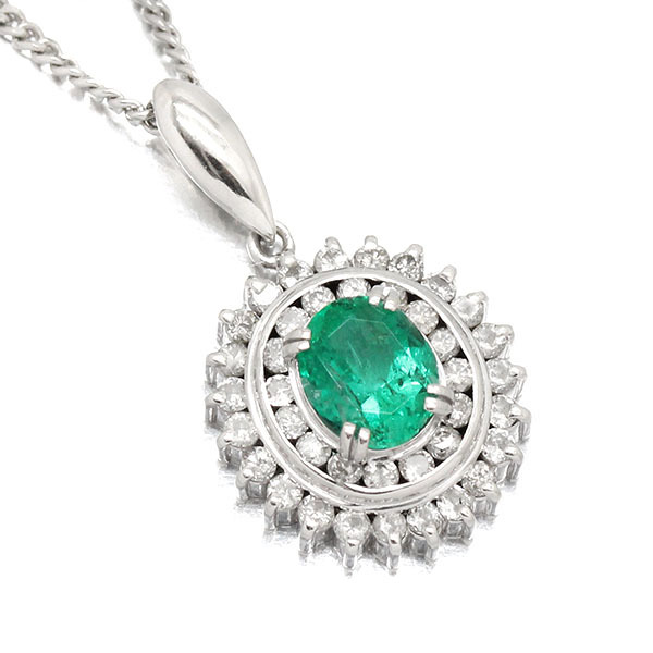 プラチナ エメラルド ダイヤモンド ペンダント ネックレス 40cm E0.73ct D0.44ct Pt900/850 宝石 ジュエリー 女性 レディース 華やか
