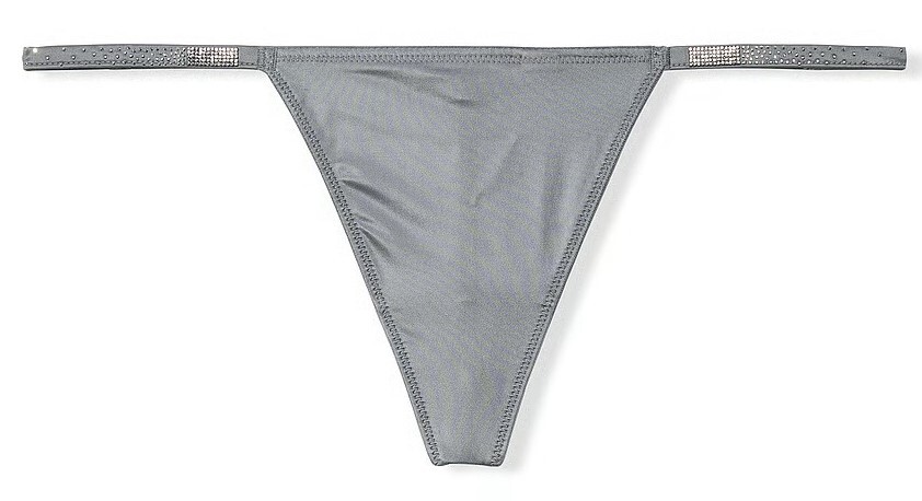 ・色:グレー。ストラップにクリアのラインストーン付き。バックにクリア&黒のラインストーンでロゴ付き。