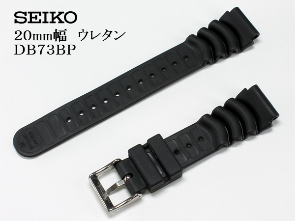 | セイコー 20mm幅 ダイバー用ウレタンバンド DB73BP セイコー汎用型のカン幅20ミリ対応ウレタンバンドです。 ダイバー用に設計されたウレタンバンドなので同じカン幅であれば セイコーブランド問わず取替えることも可能です。 (カン足が短い時計には取り付けが出来ない場合もございます。) ※モニターや撮影照明の影響により、 実物との色あいが異なる場合があります。予めご了承ください。