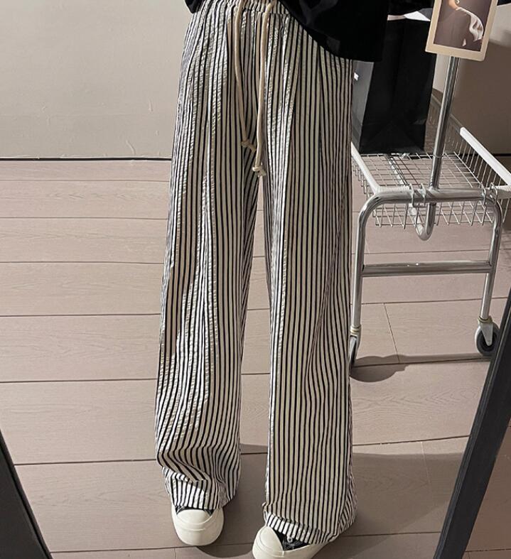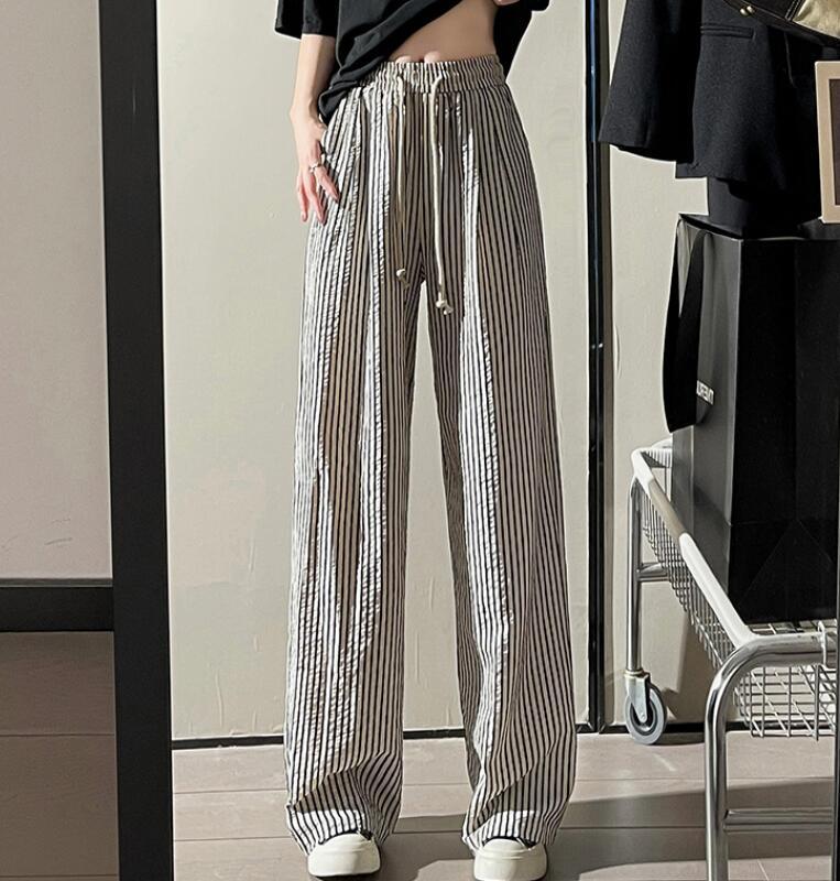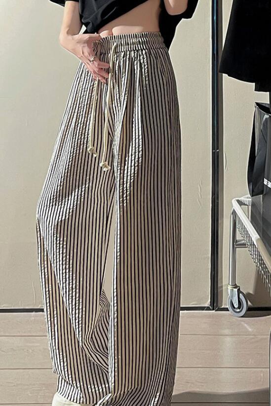 人気 新品 ワイドパンツ レディース タックワイドパンツ ストレートパンツ 春夏 夏 綿 ワイド スラックス ロング マキシ丈 ストライプ柄