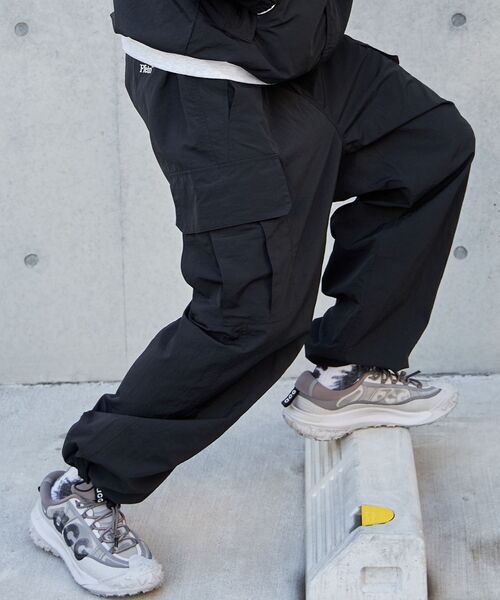 参考商品名:【FFEIN(フェイン)】ナイロンテックワイドカーゴパンツ / ドローコード ブロークコア シティガール シティボーイ ワンポイント シンプル ノームコア