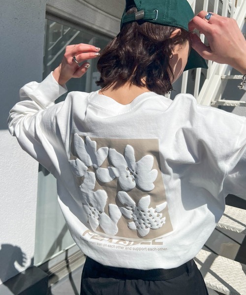 参考商品名:前後ロゴ入りフラワープリント長袖Tシャツ
