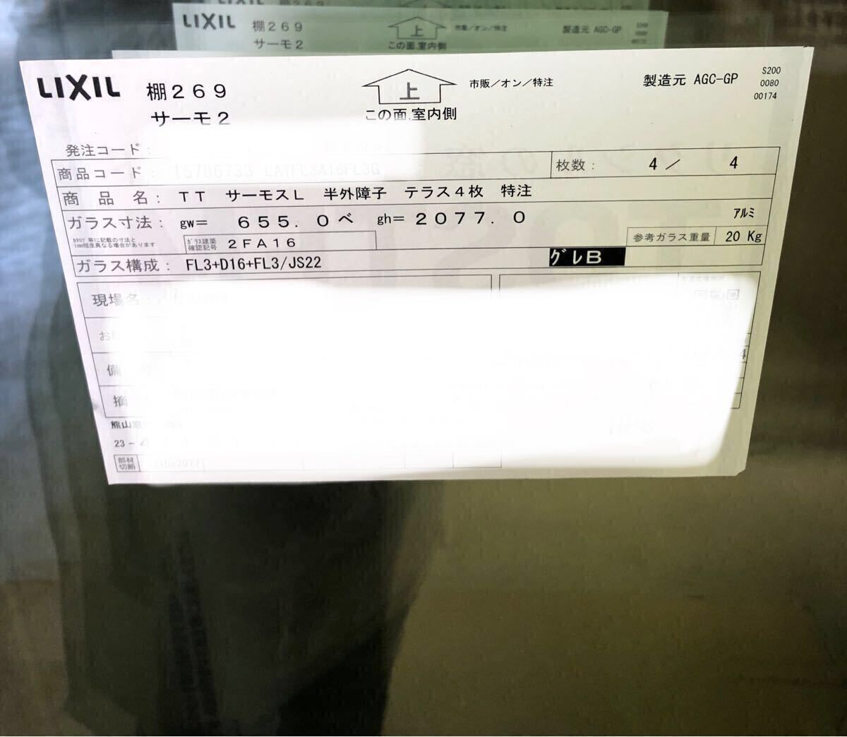 No.④ 1枚 リクシル LIXIL 655×2077 透明 ペアガラス 複層ガラス 窓 小屋 DIY 改装 リノベーション コンテナハウス