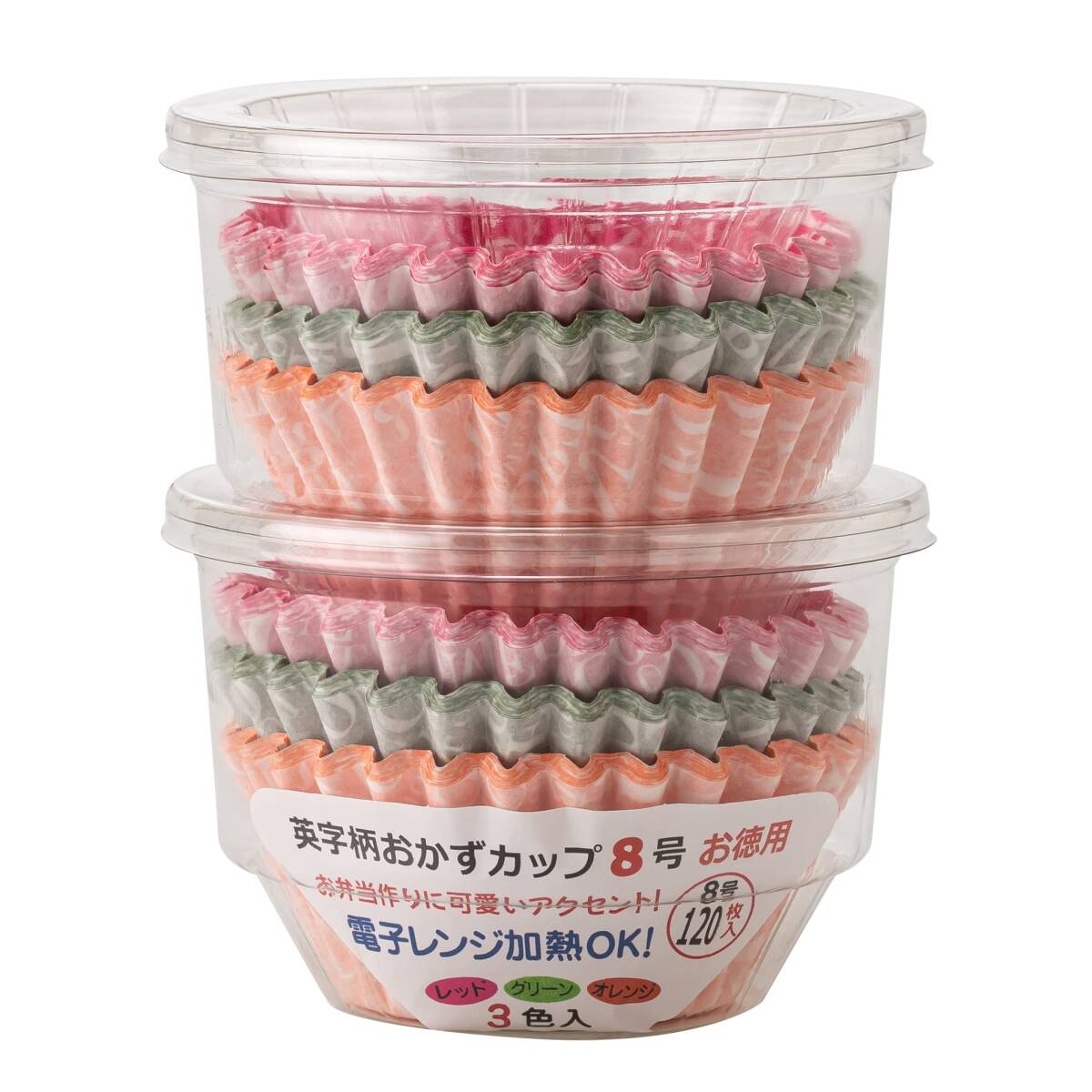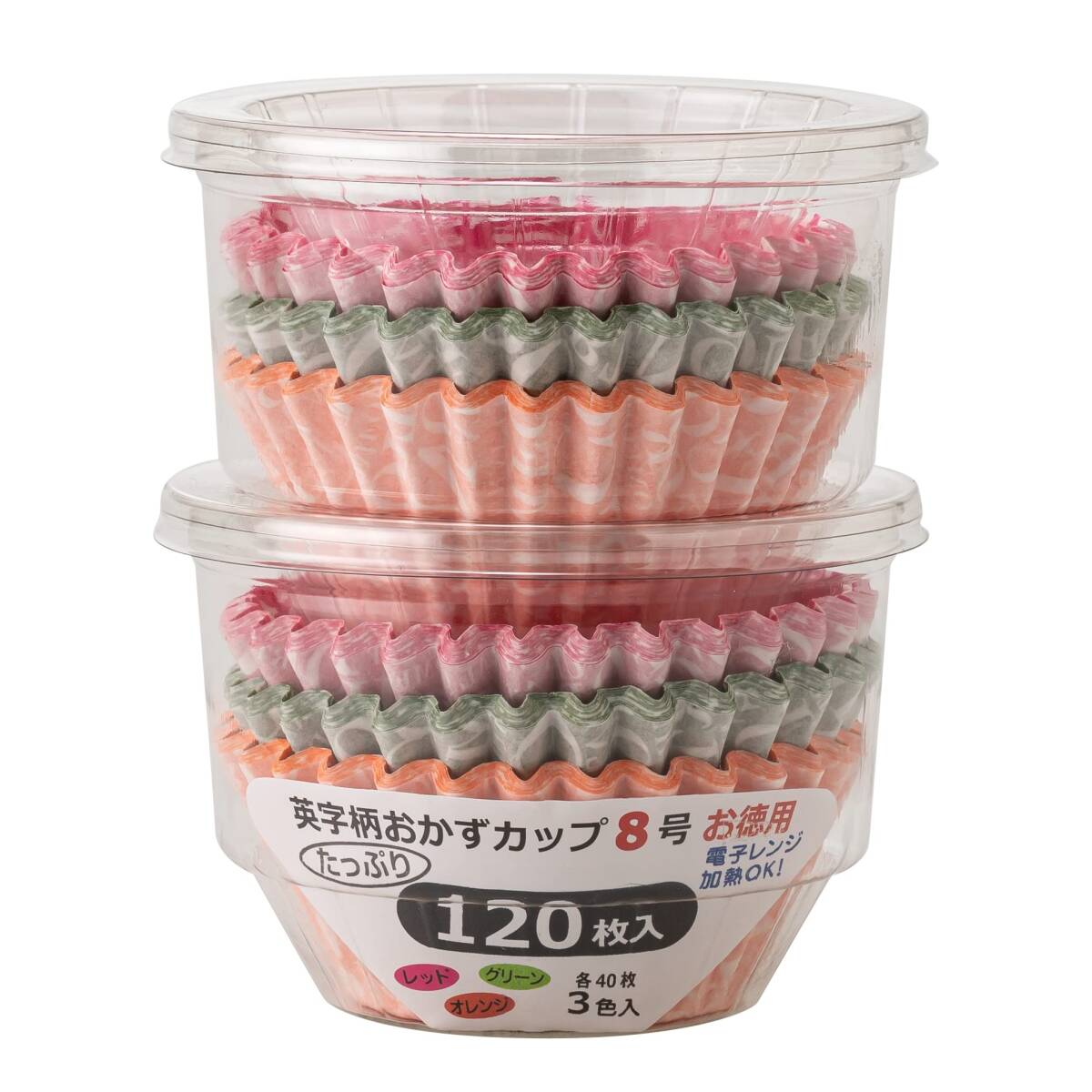 アルテム おかずカップ お弁当カップ 8号 深型 英字柄 120枚入 3柄×40枚 電子レンジ対応 日本製