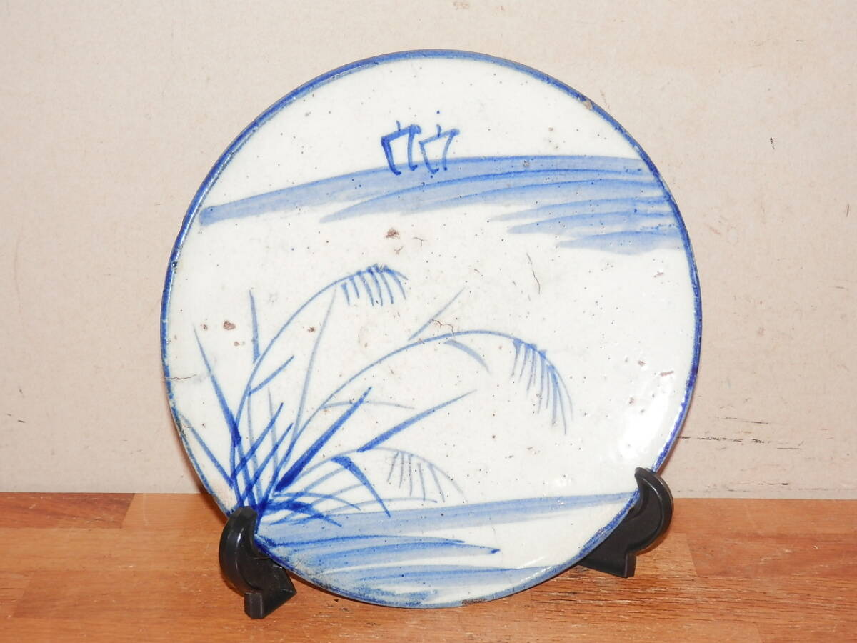 古瀬戸 染付 石皿 七寸皿 直径22cm 江戸時代 陶器 焼き物