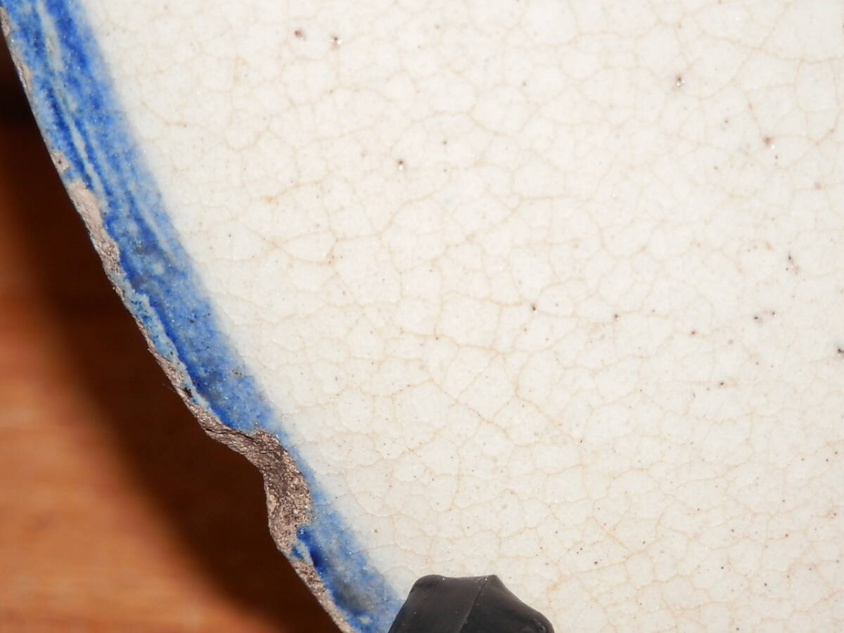 画像でも確認できますが、縁の欠けや窯キズなど時代がついています。