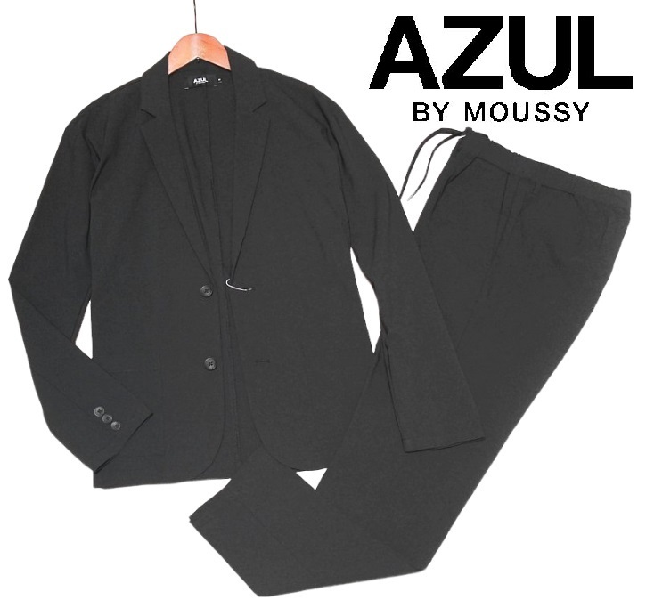 新品! アズールバイマウジー 2B 微光沢 カジュアル セットアップ スーツ ブラック (M) ☆ AZUL BY MOUSSY メンズ ハイストレッチ 薄手 黒系