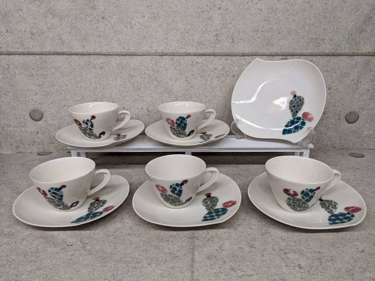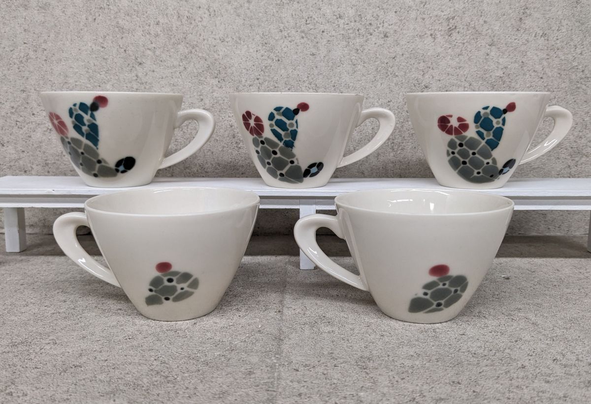 gg658■【箱なしデッドストック】昭和レトロ 川折 カップ&ソーサー 5客セット 茶器 レトロモダン アールデコ ミッドセンチュリー/80