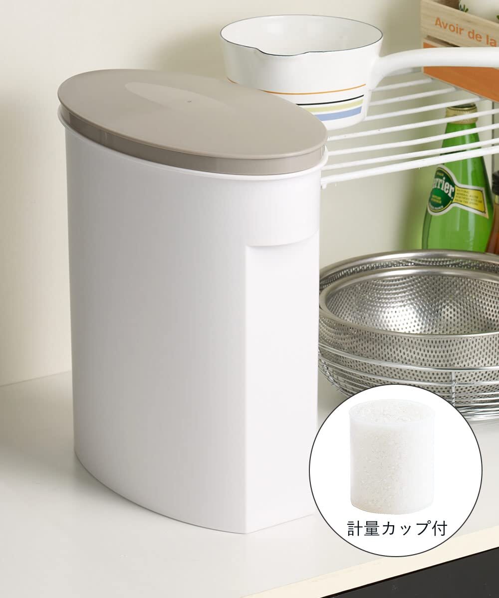お米以外にも、パスタや小麦粉、パン粉など、食品の保存にも最適です 計量カップ(無洗米・一般米用目盛付)付き