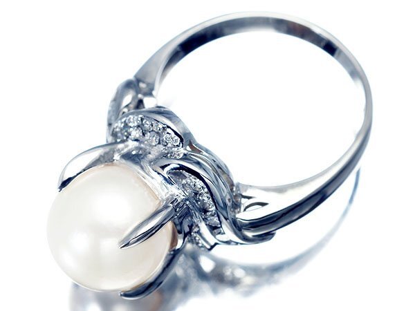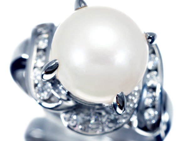 妖艶なホワイトカラーに、美しい艶と照りを魅せてくれるアコヤ真珠と、周りを取り囲む美しい透明感のダイヤモンドがキラリと輝く、素敵な良質アコヤ真珠リングです!