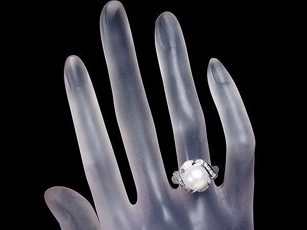 美しい艶と照りを放つ良質アコヤ真珠9.4mm珠&天然ダイヤモンド総計0.26ctを素敵に宝飾した、高級Pt900リングを激安価格で特別大放出致します!