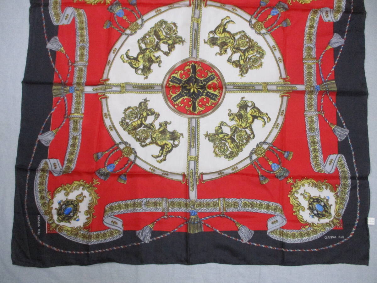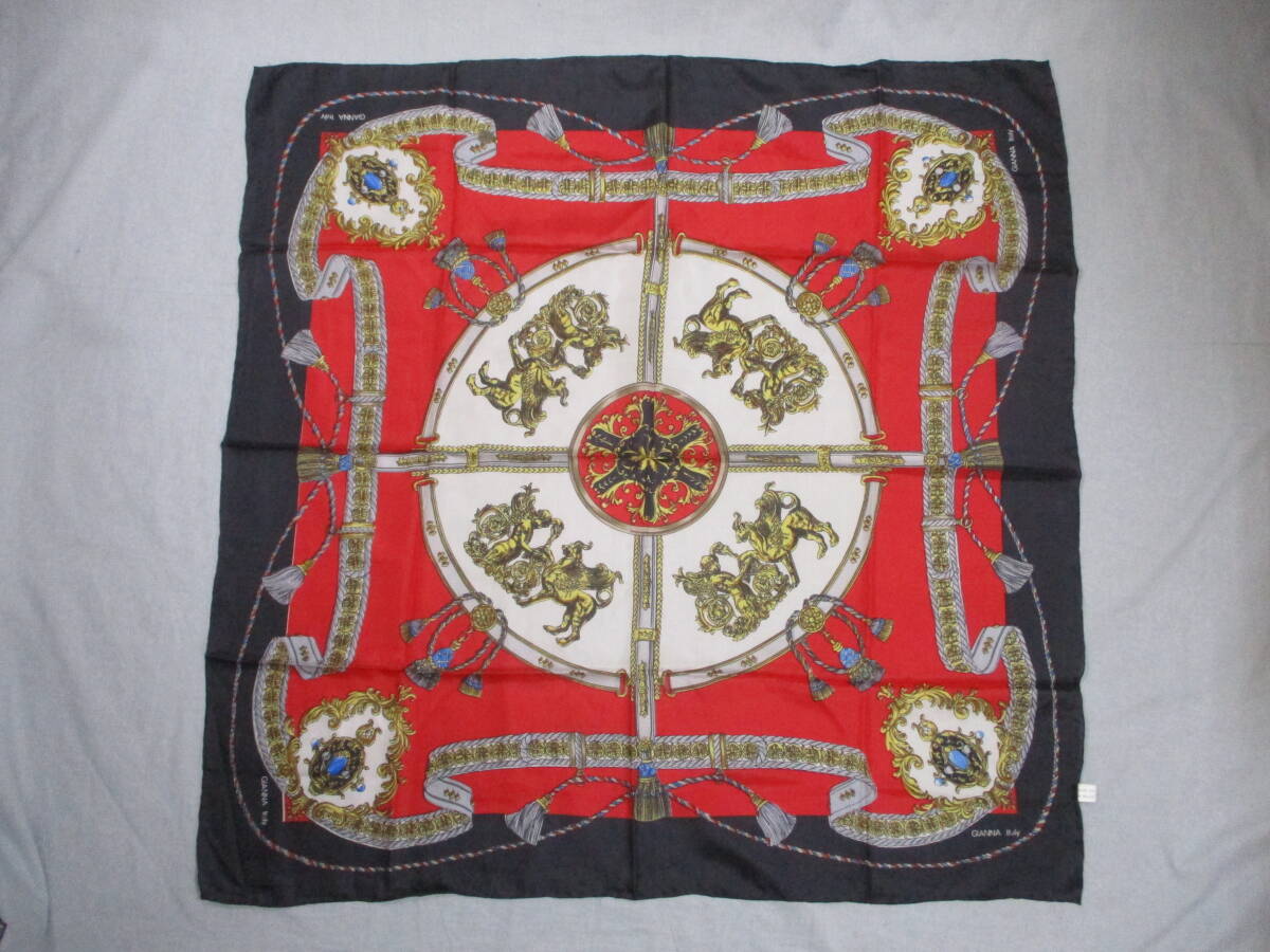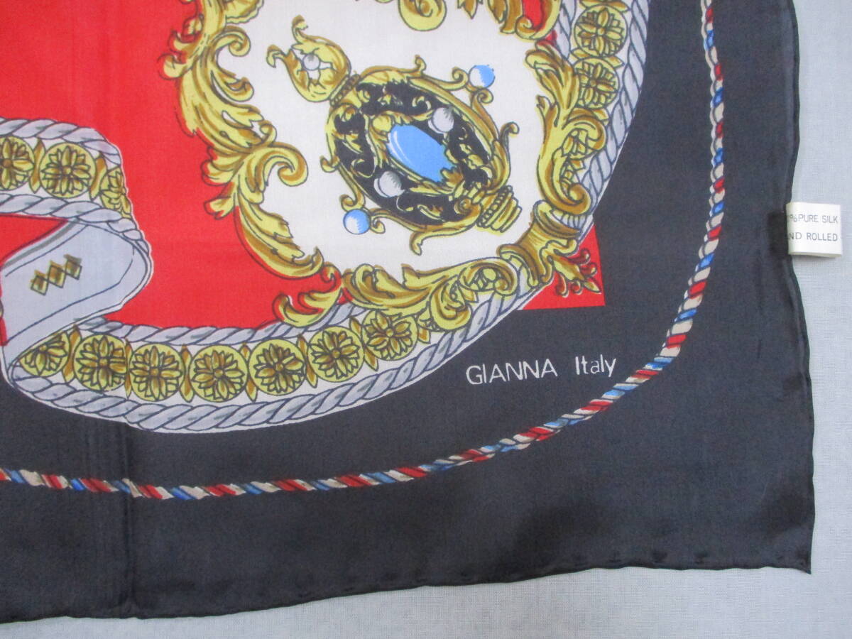 GIANNA Italy ジアーナ スカーフ ブラック・レッド・ゴールド系 ≒86cm×≒86cm 100%PURE・SILK