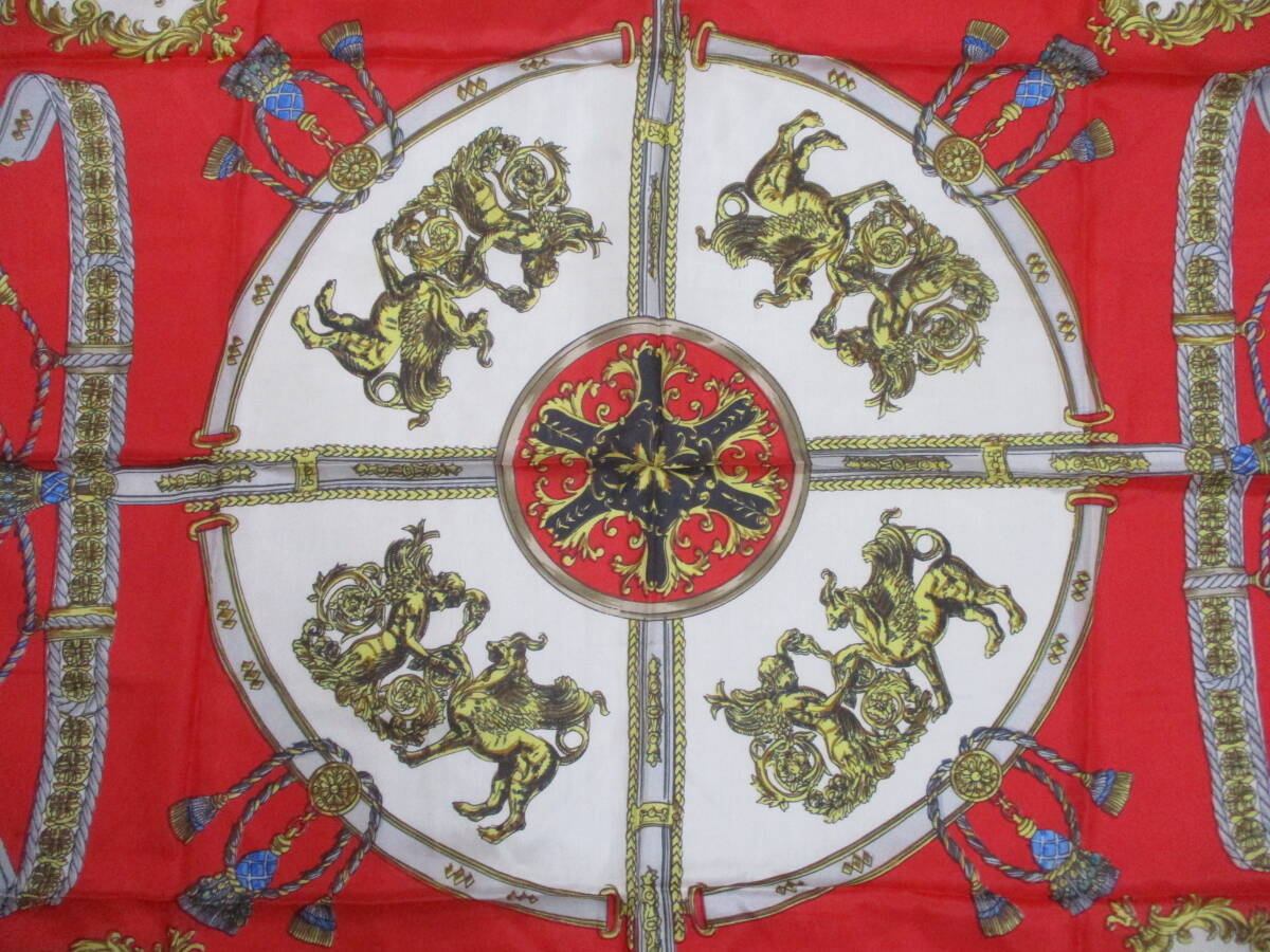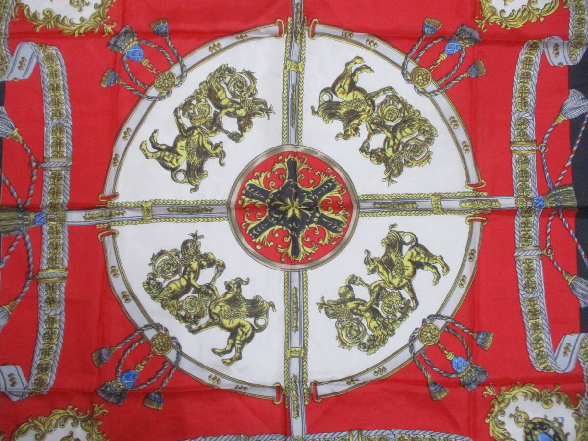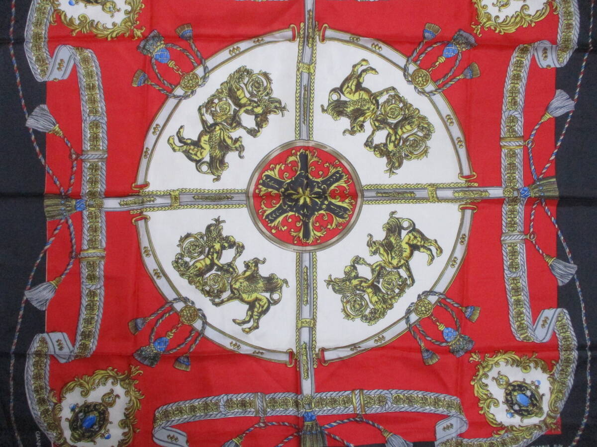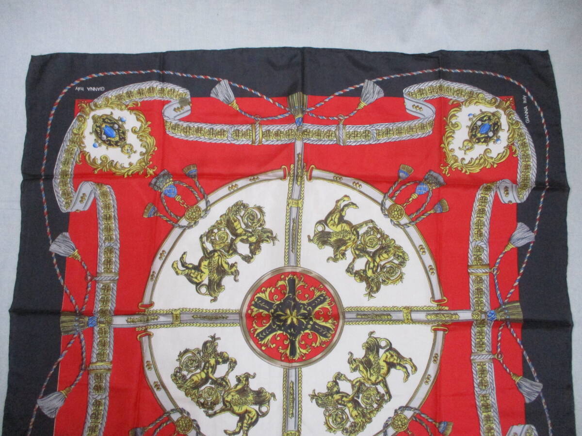 GIANNA Italy ジアーナ スカーフ ブラック・レッド・ゴールド系 ≒86cm×≒86cm 100%PURE・SILK