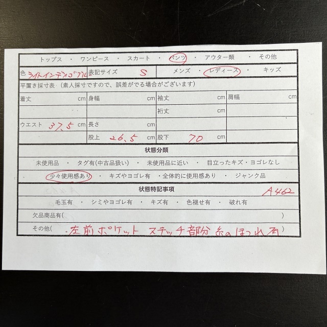 ・その他(左前ポケット ステッチ部分 糸のほつれ有)