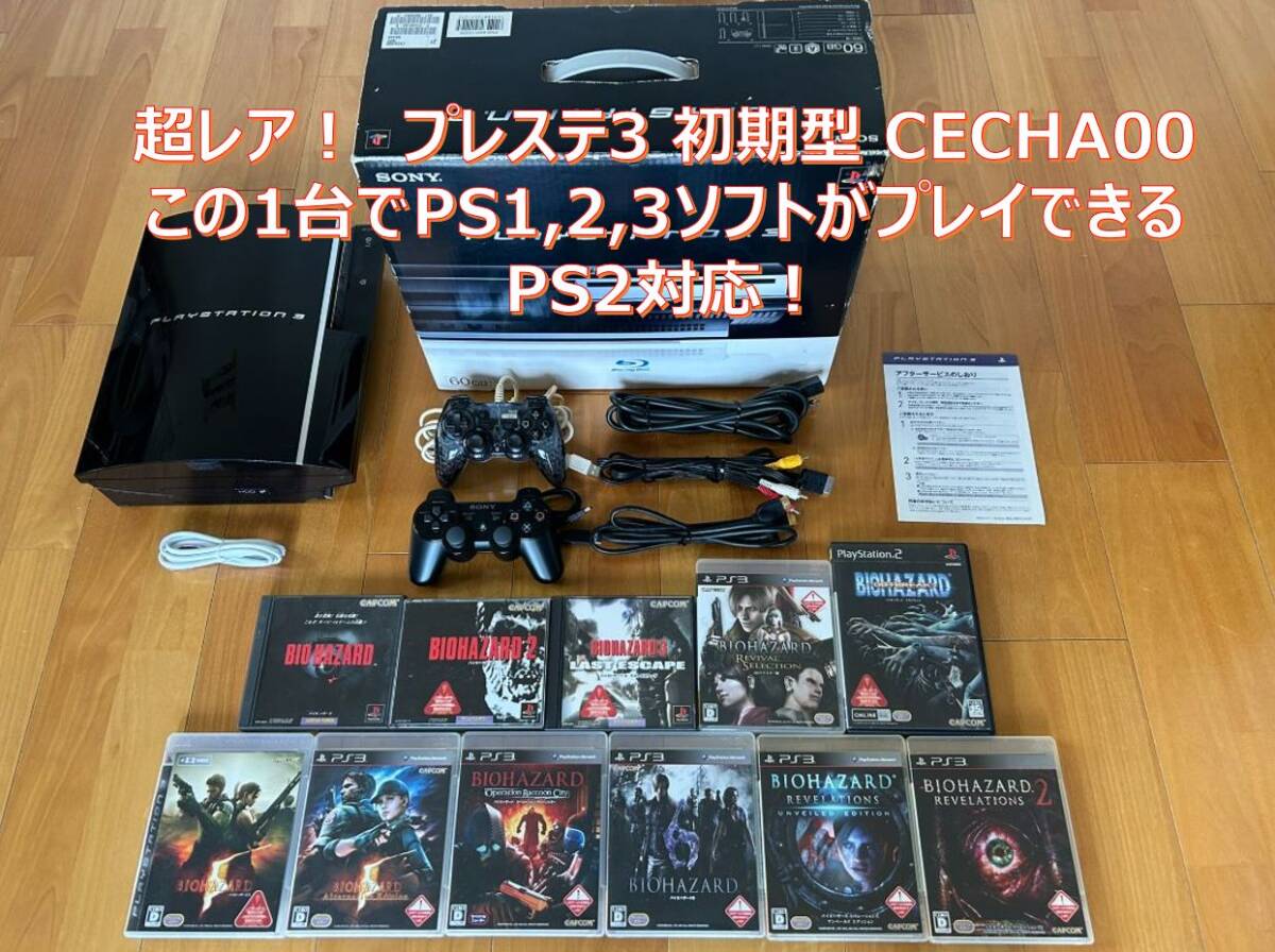 動作品 この1台でPS1,2,3ソフト(バイオハザード1~6)遊べるセット PS3初期型(60GB→500GBへ交換済)コントローラ2個+HDMI CECHA00 BIOHAZARD