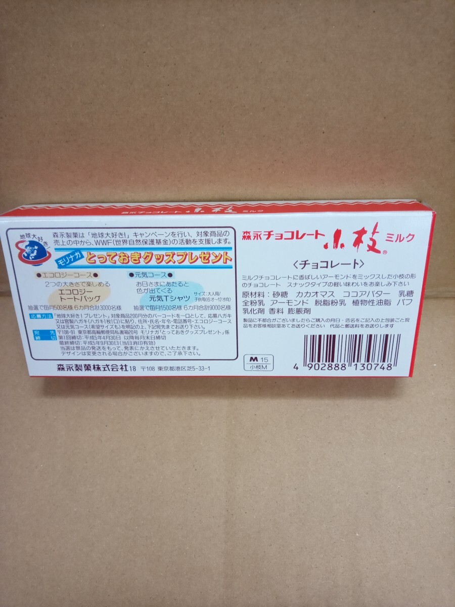 1990年代の、森永/森永製菓、小枝 チョコレート(ミルク)のパッケージです。空箱、空き箱です。