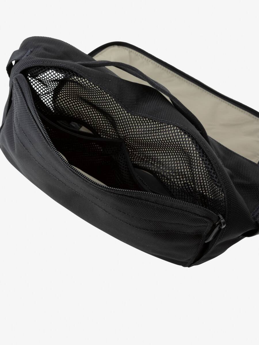 取り外し可能なショルダーストラップ/ポーチとしても使用可能/前面、背面どちらからでも内側へアクセスできる構造/本体内部にメッシュポケット/トップにグラブハンドル
