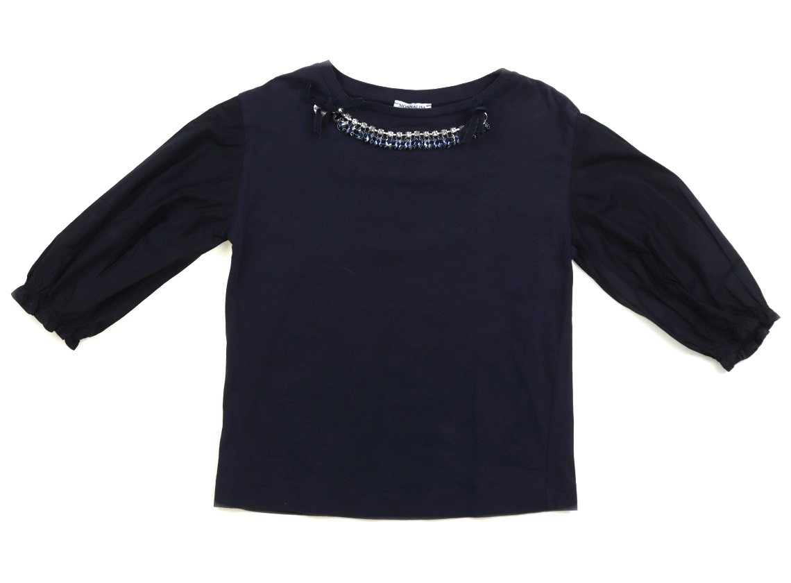 実際のサイズ表記は8/128。胸元のビジューは少し重みがあります。全体的に細かい白の毛羽付着と所々に白っぽい擦れが見受けられます。