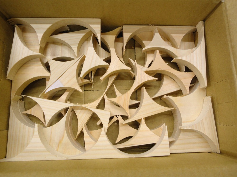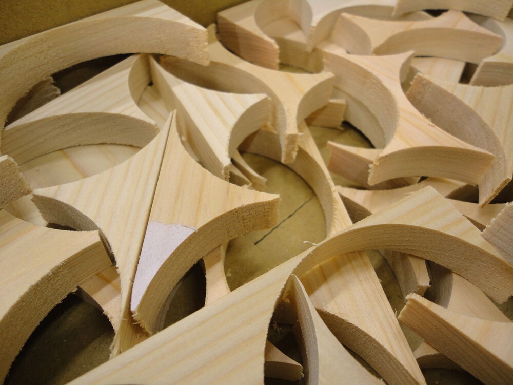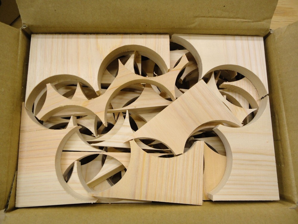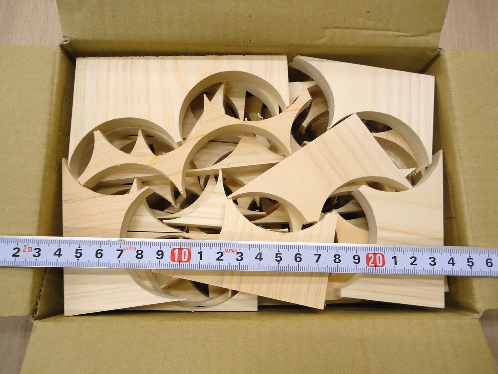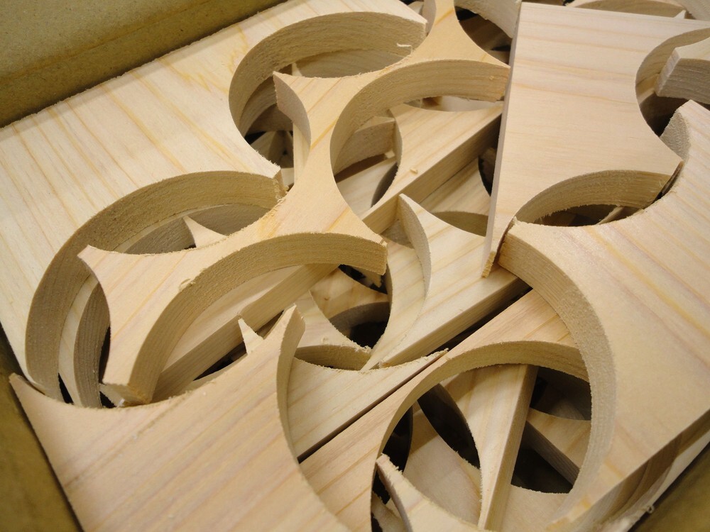 桧の板を糸鋸で切り抜いたあとの端材です。