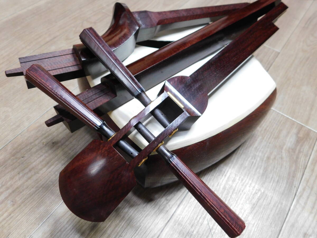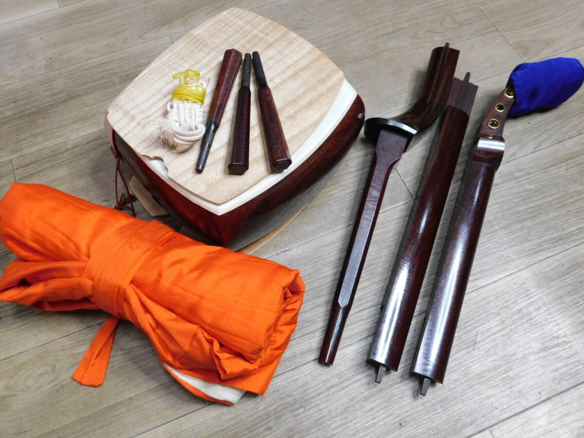 本体と糸巻き、胴掛け、音緒、収納袋が全てです。