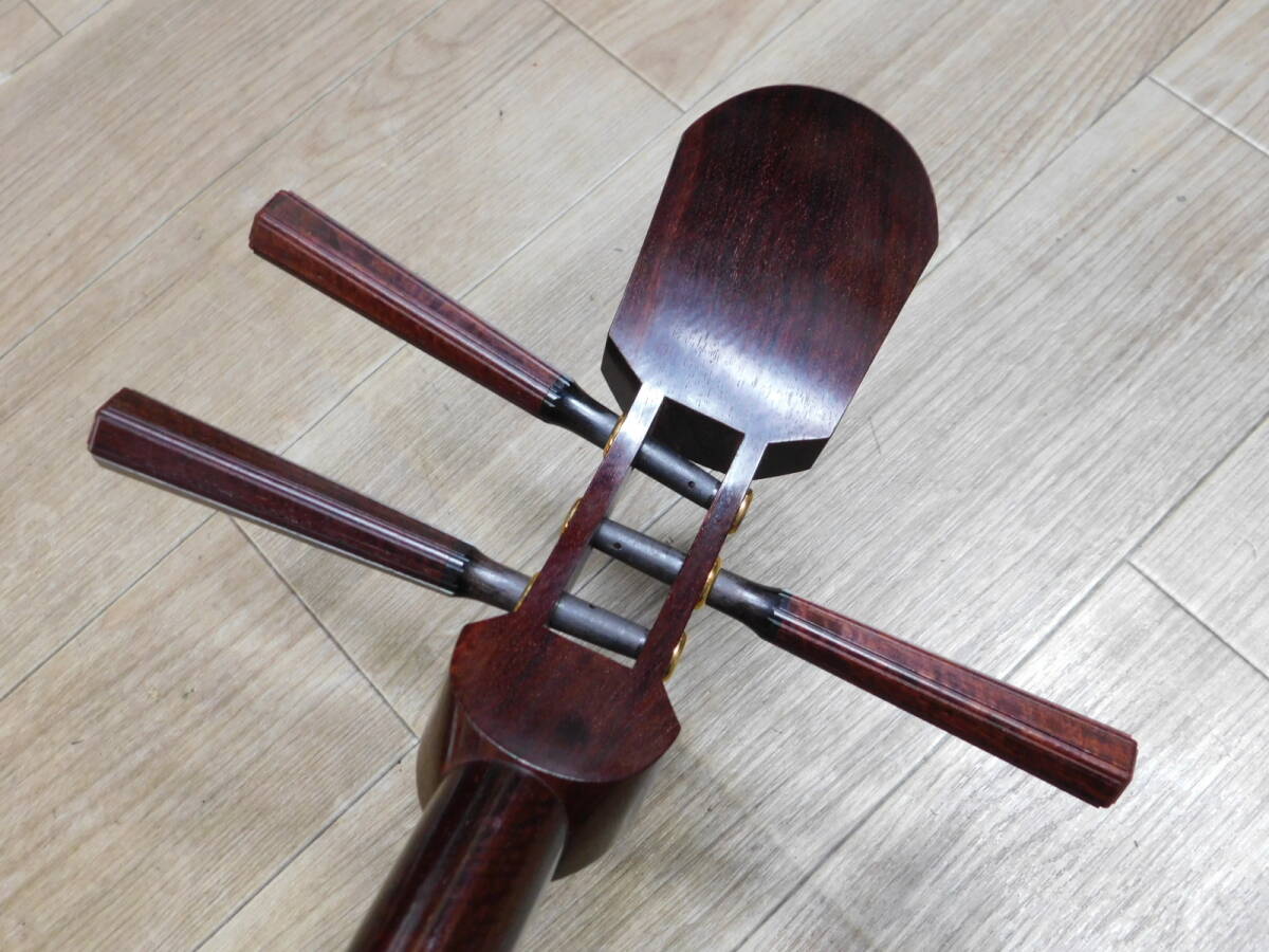【中棹高級三味線】紅木 金細(金ホゾ)2本溝(二段溝) びっしりトチあり K9刻印 子持ち綾杉胴/M230
