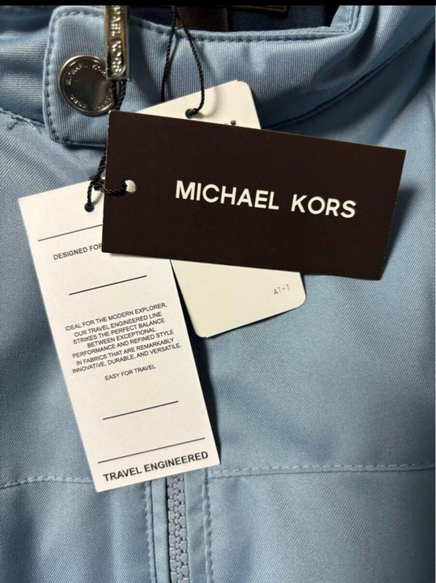 カラー...ブルー Brand New with Tags MICHAEL KORS Riders Jacket Tried on only, never worn. Color: Light Blue Material: 100% Polyester (Lining: 92% Polyester, 8% Polyurethane) Size: L (Length: 67cm / Shoulder Width: 49.5cm / Chest Width: 61cm / Sleeve Length: 65cm) A timeless, versatile design that seamlessly integrates into any wardrobe. Crafted from luxurious polyester, this MICHAEL KORS riders jacket is both lightweight and durable, ensuring long-lasting wear. Key Features: Sleek Stand Collar & Front Zip Closure → Adds a modern touch Soft, smooth polyester fabric → Provides ease of movement & comfort Side Pockets → Enhances practicality Refined Blue-Gray Hue → Offers an elegant, sophisticated look, effortlessly pairing with various outfits Perfect for casual styling or active occasions, this premium jacket balances style and function. #MichaelKors #RidersJacket #NewWithTags #StandCollar #SmartCasual #ElegantOuterwear #LightweightJacket #ActiveFashion #BlueGray