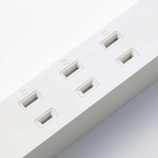 | ●幅が約33mmのスリム形状なので、机の上など狭い場所に設置しやすく、 遠くにあるコンセントやUSB充電器を手元に置くことができます | |