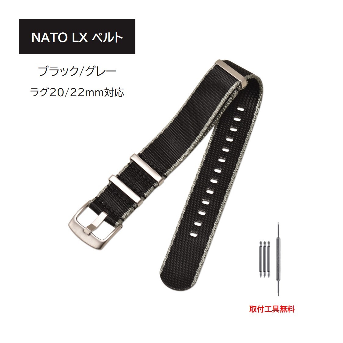 NATO LX ベルト ラグ20mm 22mm ブラック/グレー