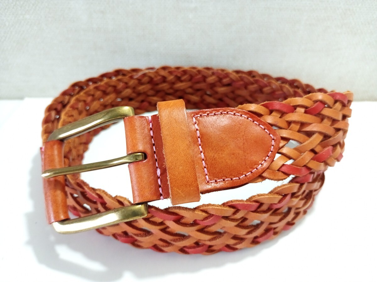 本革メッシュベルト 全長108cm 40mm幅 茶色