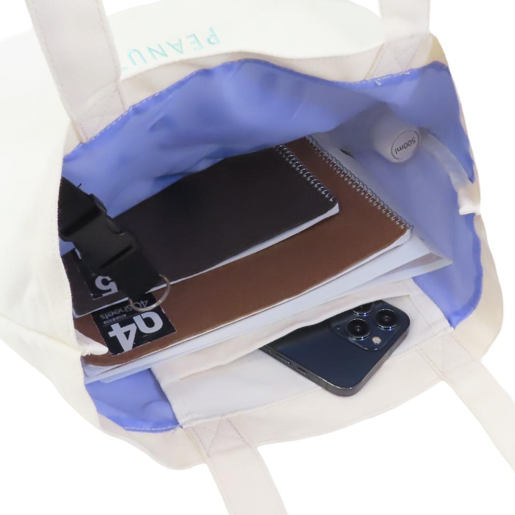 大きな刺繍とカラーリングが可愛いキャンバス地のバッグシリーズ 大人気[PEANUTS/SNOOPY]グッズにまたまた可愛いnewアイテム登場こちらは収納力抜群な[トートバッグ]A4サイズのノートやペットボトルなどしっかり収納できます内側にはフラットポケット&キーリング付き可愛いキャラバッグいろいろあるのでお気に入りを揃えてくださいサイズ:約360x390x80mm素材:綿