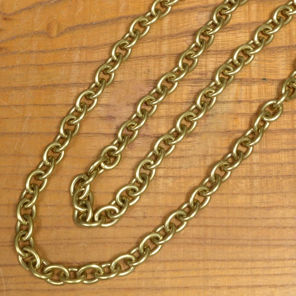 チェーンには丸カンを使用しており、馴染んでいくにつれて色合い深くなる真鍮製。