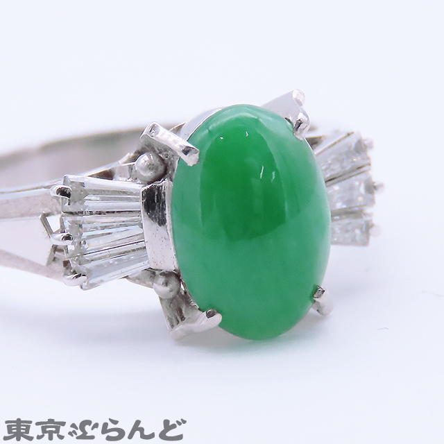 500462051 ノーブランド no brand ヒスイ ダイヤモンド リング プラチナ Pt850 1.32ct 0.35ct 11号相当 指輪 レディース