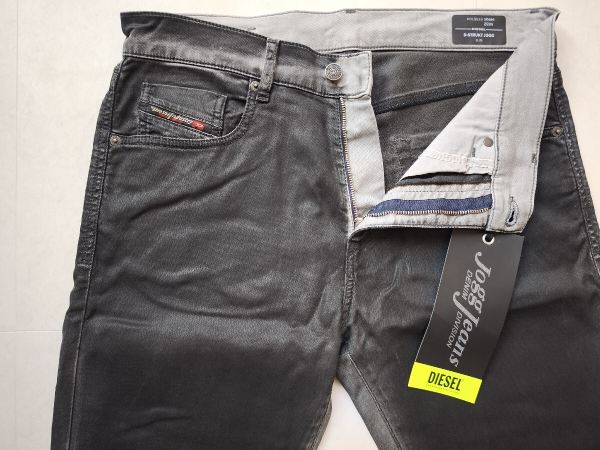 JOGG JEANSのファブリックをよりデニムに近づけた「JOGG JEANS ツイル」を使用し履き心地の良さとリアルなデニムの風合いを実現させています。特殊な光沢コーティング加工が施されており、レザーパンツのようなラグジュアリーな一本。再生セルロース繊維リヨセルをふんだんに含み、極限までストレッチ性を高めたディーゼルの人気デニム「JOGG JEANS」。こちらは汎用性が高い細身のスリムテーパード「D-STRUKT」をベースにジョグジーンズに落とし込んだモデルとなります。デニム特有のゴワゴワした生地感はなくさらっとしたストレッチ素材で伸縮性もあり履き心地は抜群です。スリムフィットなのでトップスも合わせやすく淡い色味のTシャツを合わせてグルカサンダルなどで足元をコーディネートすることで大人なカジュアルコーデとして役に立ちます。