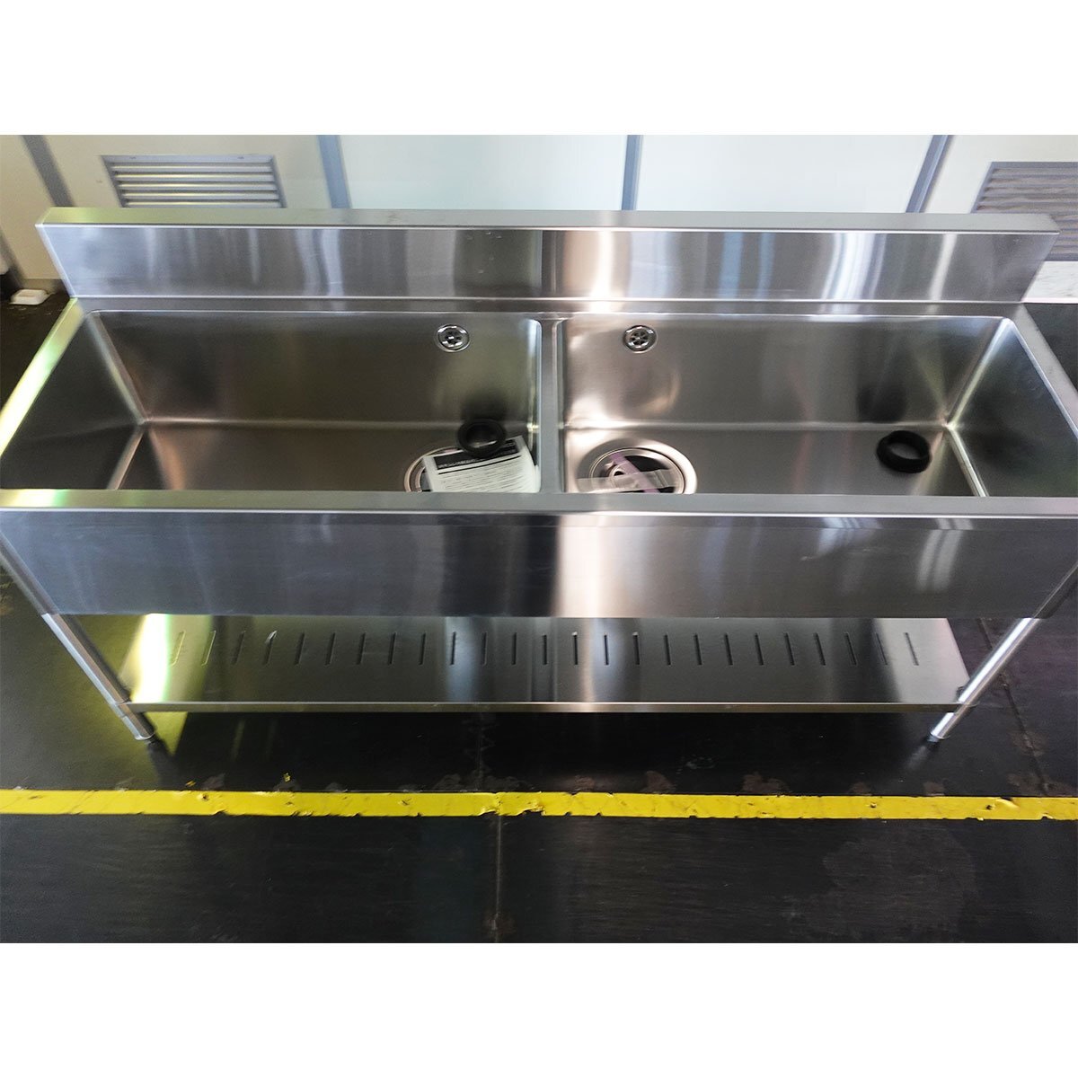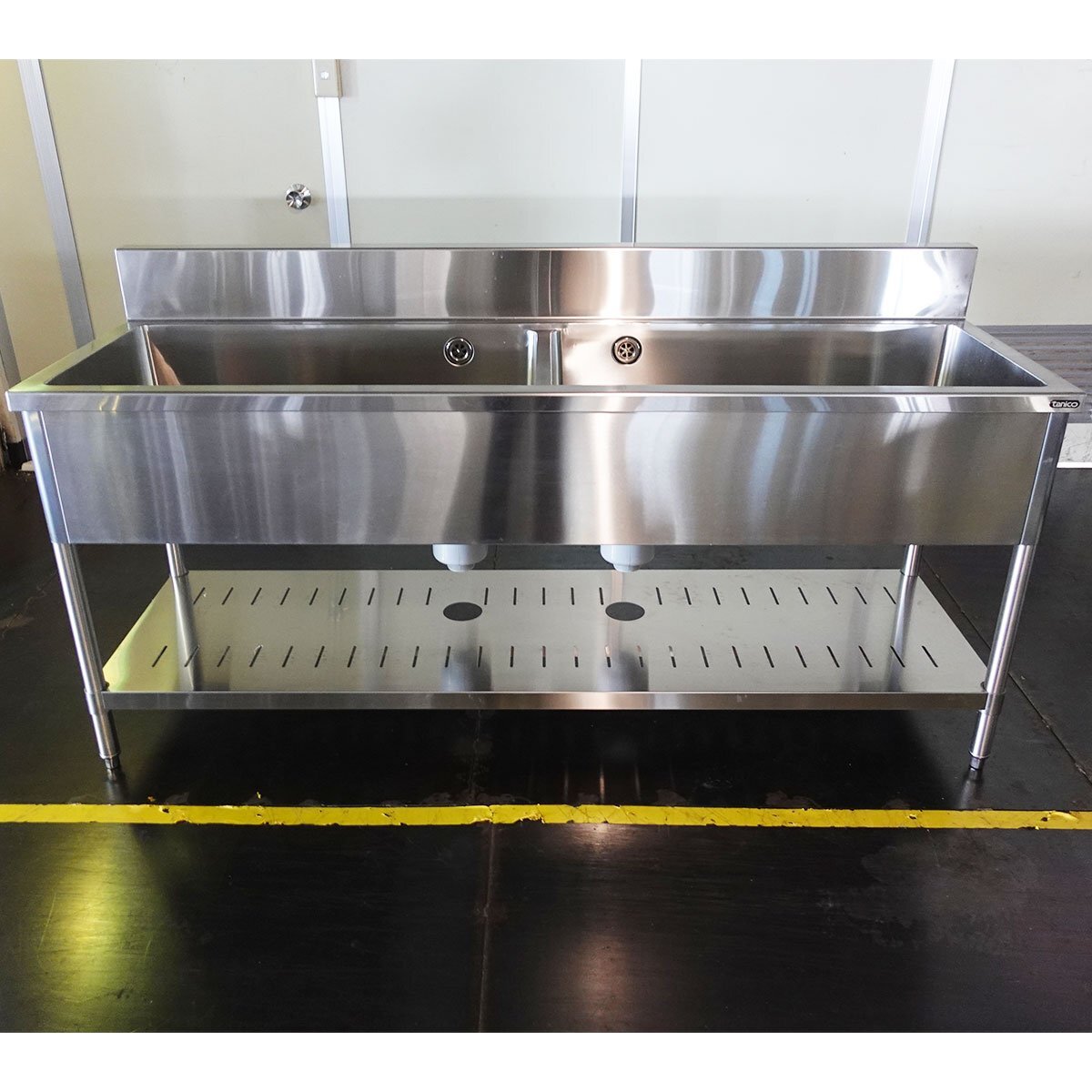 【 型 式 】 TX-2S-180 【サ イ ズ】 幅1800×奥行600×高さ800(mm) 【 定 価 】 -円(税抜) ・バックガードあり(厚み60×H150) ・シンク槽:幅845×奥行460×深さ280(mm) ■排水ホースは付属しておりません。 [別売]シングルホース2本セット:1,760円(税込) |