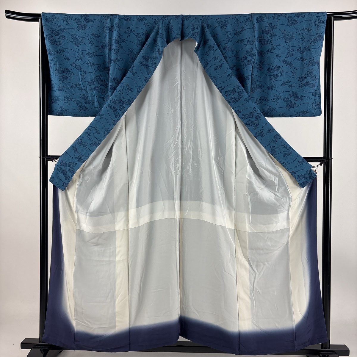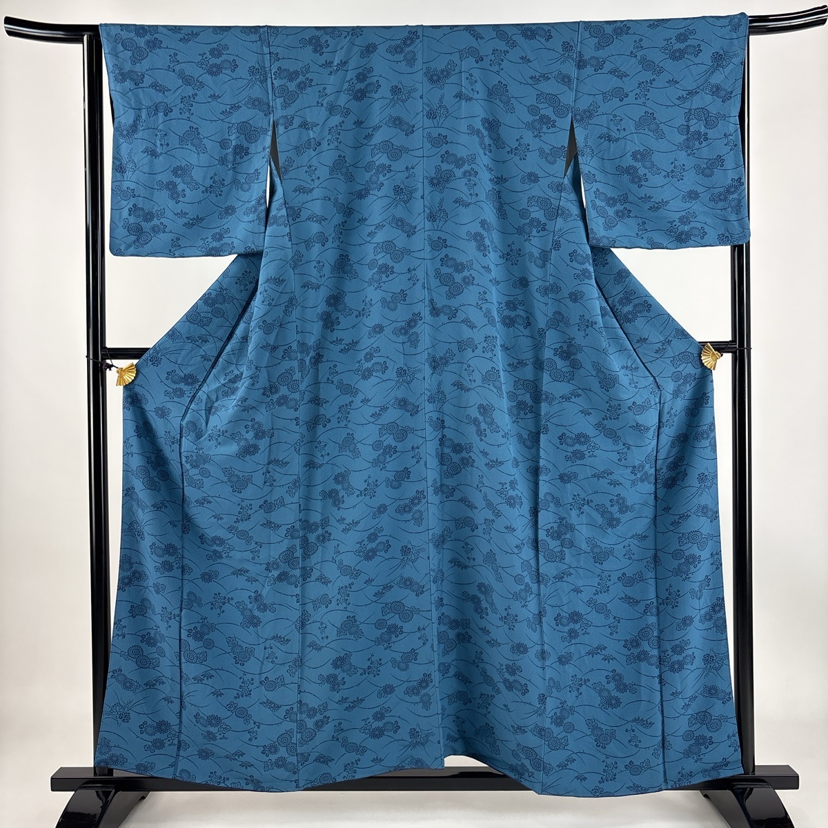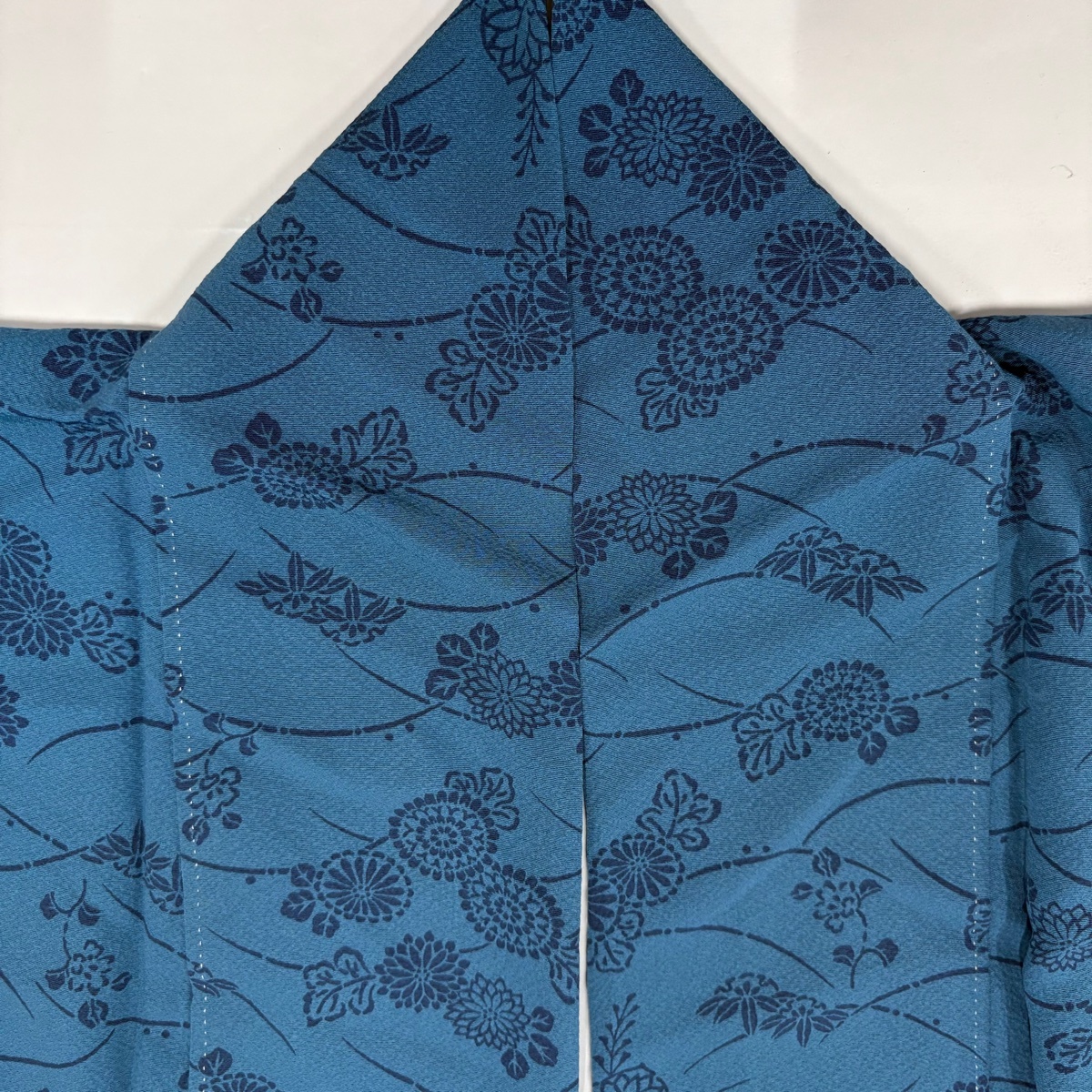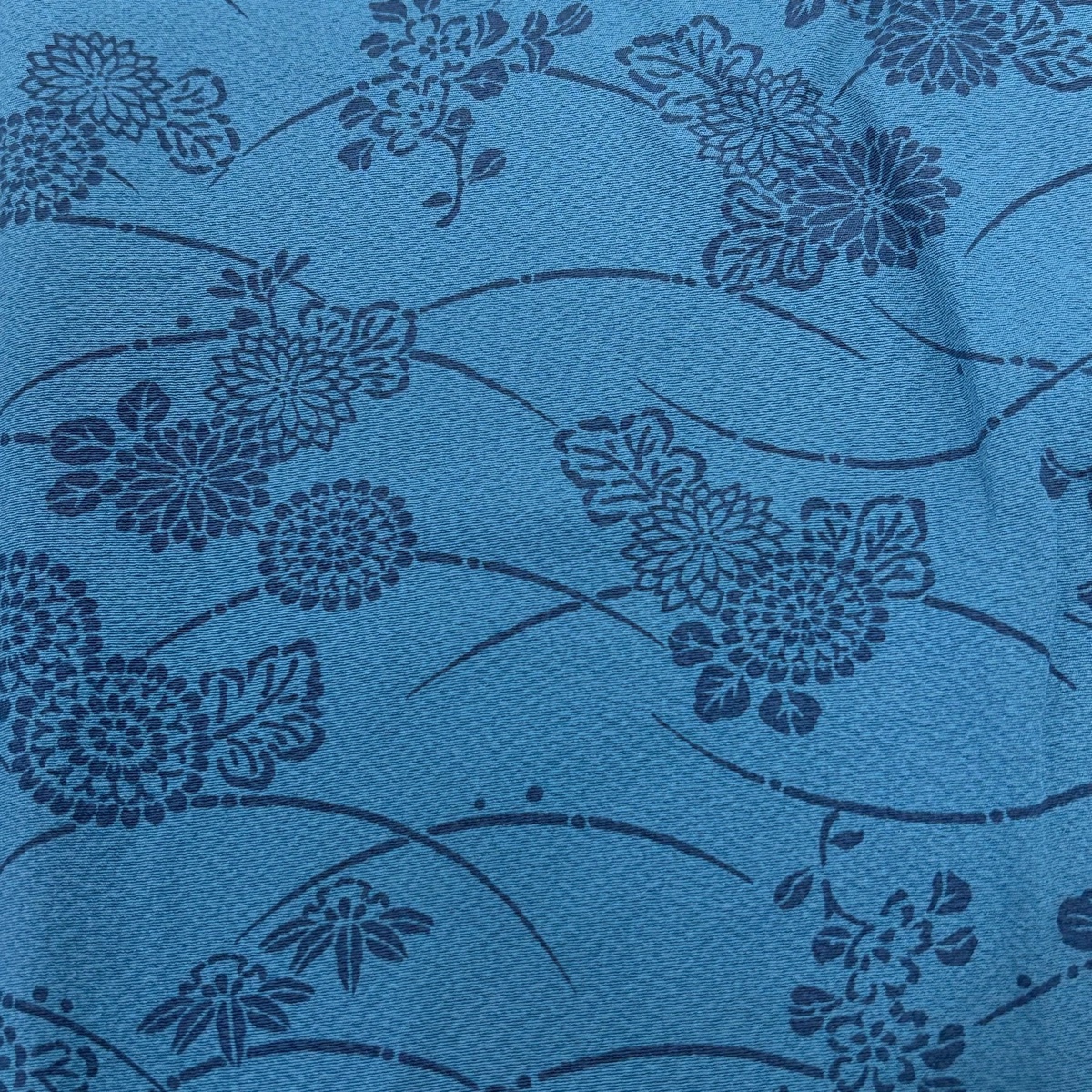 | 小紋 秀品 菊 露芝 藍色 袷 身丈157.5 裄丈65.5 M 正絹 【中古】 |