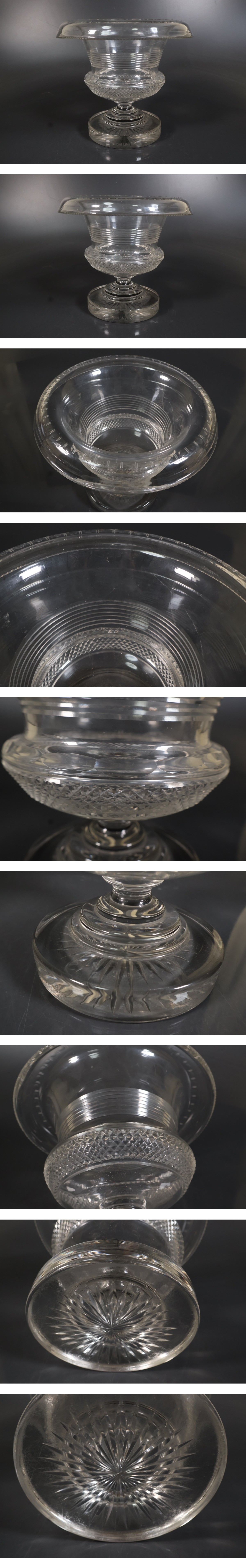 【和】(A3378) 時代古作 ぎやまん 明治カットガラス大鉢 切子ガラス 江戸ガラス