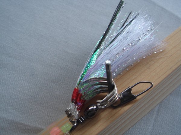 爆釣★沖メバル仕掛け14号鈎 白フラッシャー+エンボスシート+孔雀10本鈎仕掛け1本★1350円+送料250円