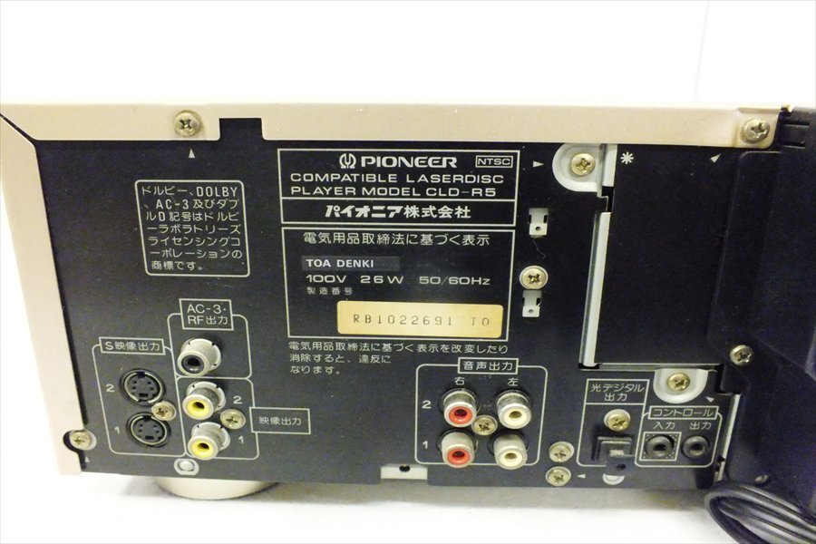 | ◆商品◆ メーカー---------PIONEER パイオニア モデル-----------CLD-R5 付属品-----------画像に写っているものがすべてになります。 ◆外装ランク◆ 【 C 】 ◆状態◆ 中古品の為キズや汚れなどの使用感はご容赦ください。 1 通電します トレイ開閉がスムーズに行かない時が有り 外装に傷汚れ有り 正常再生動作出来ません 通電はしましたが、動作しませんでした。 現状品での出品となります。 調整やメンテナンスが必要となります。 【重要】配送送料と送料に送料が0円と表示される場合がございますが、出品画面に記載の送料が落札後にご精算されます。 | |||||||||||||||||