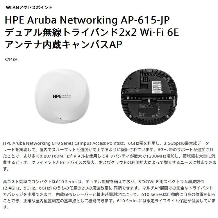 新品 HPE Aruba Networking AP-615 (JP) キャンパスAP アクセスポイント R7J48A (マウントブラケットキットR3J19A付) |