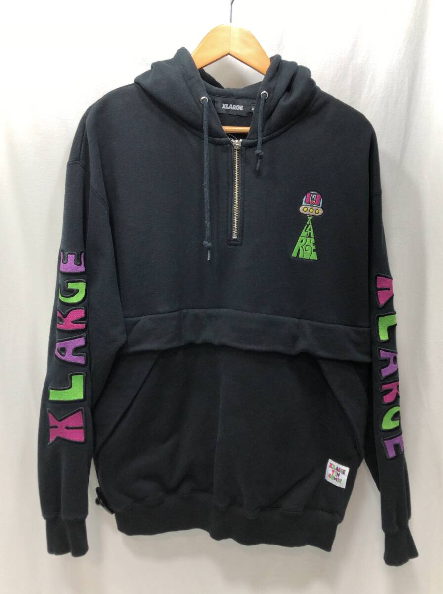 XLARGE TIM COMIX ハーフジップ パーカー メンズ M ブラック 刺繍 ワッペン スウェット エクストラ ラージ SS-386004