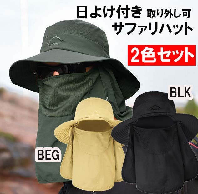 2色セット BLK/BEG 日よけが取り外せるサファリハット