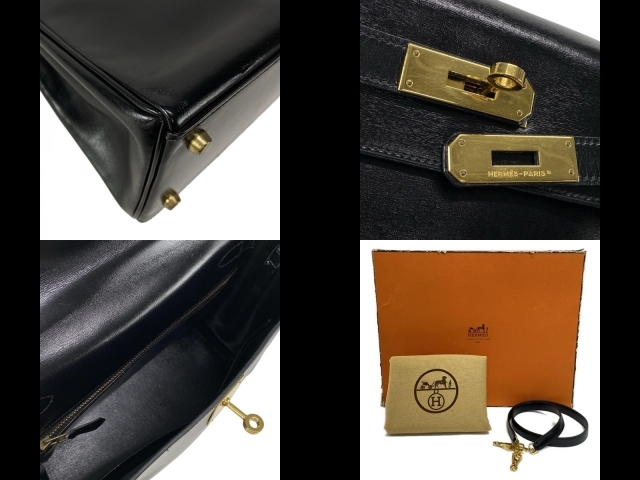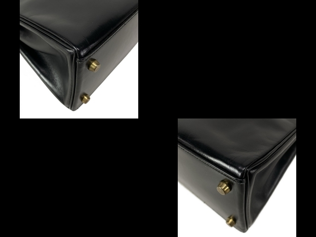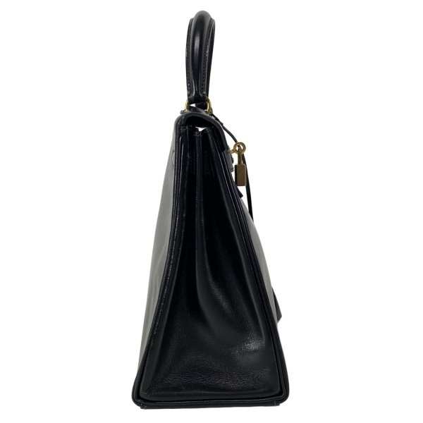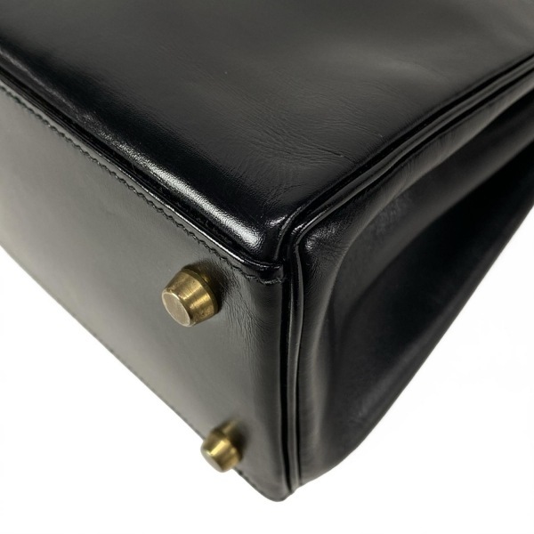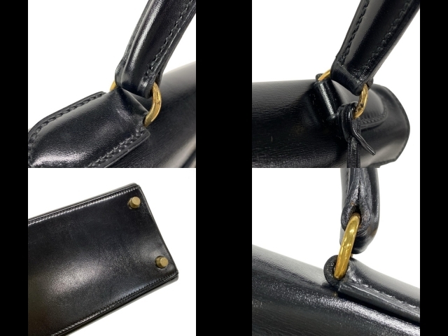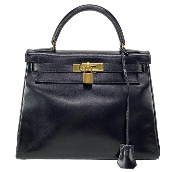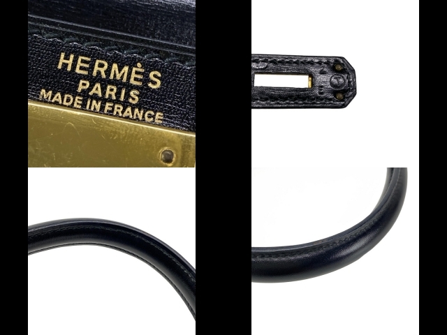 エルメス HERMES ハンドバッグ ケリー28 黒 内縫い/ゴールド金具 〇T バッグ
